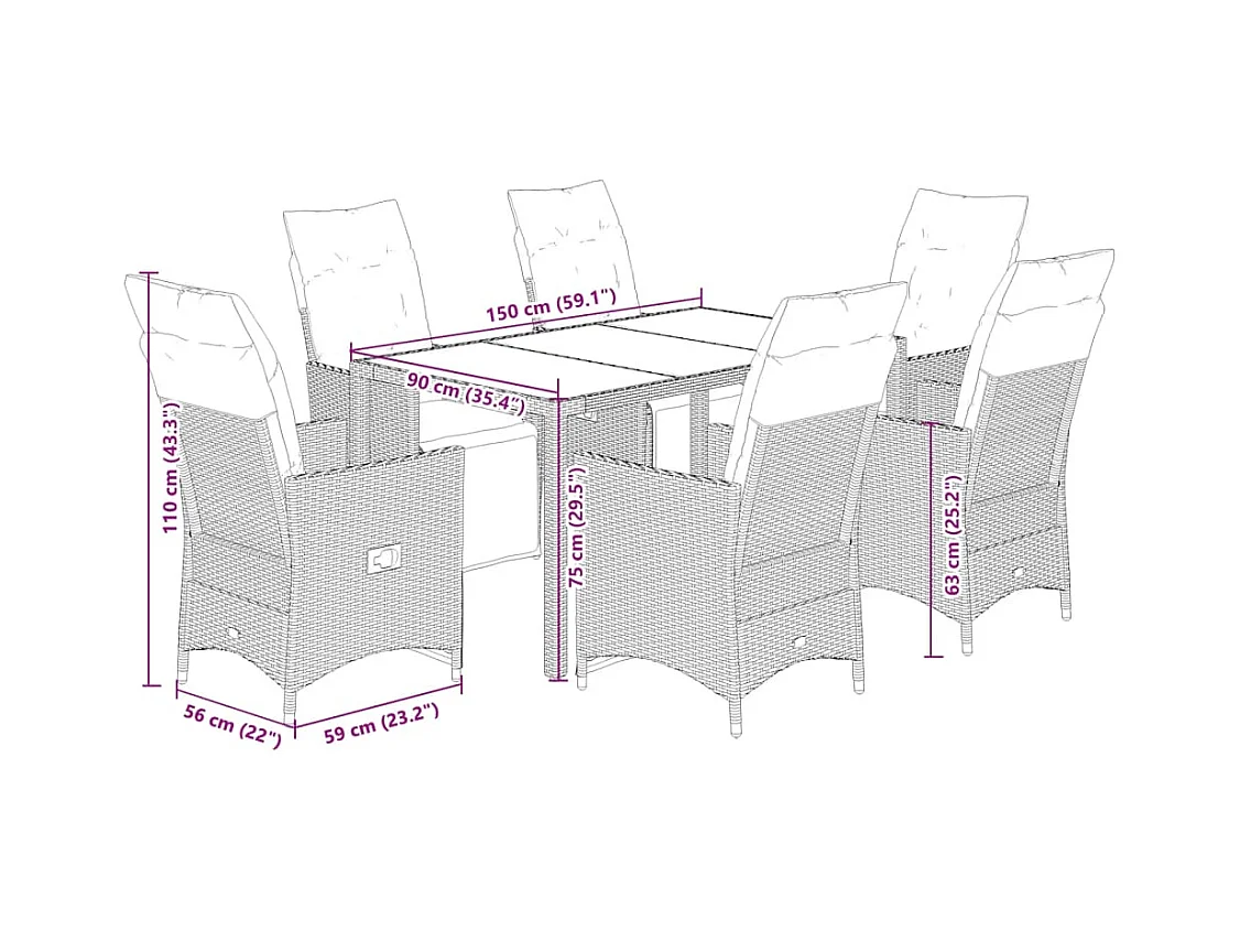 Ensemble de bistro de jardin 7 pcs coussins gris poly rotin