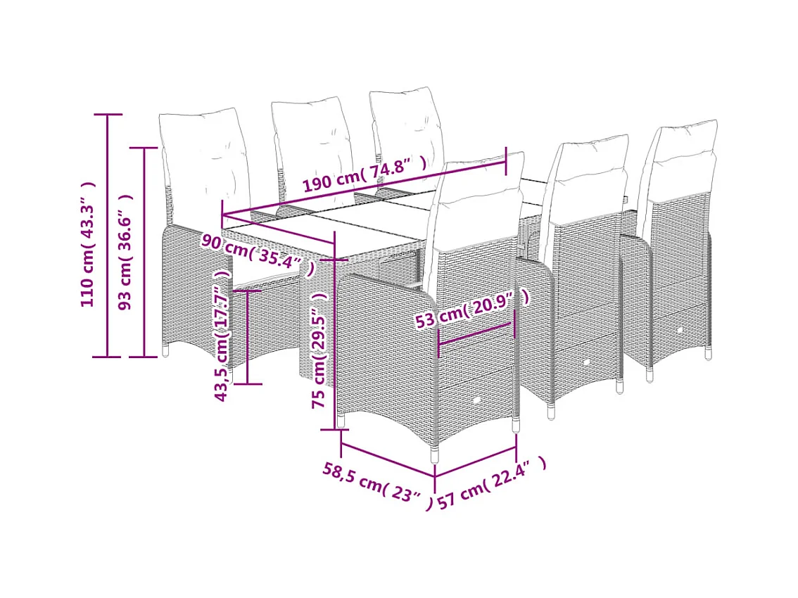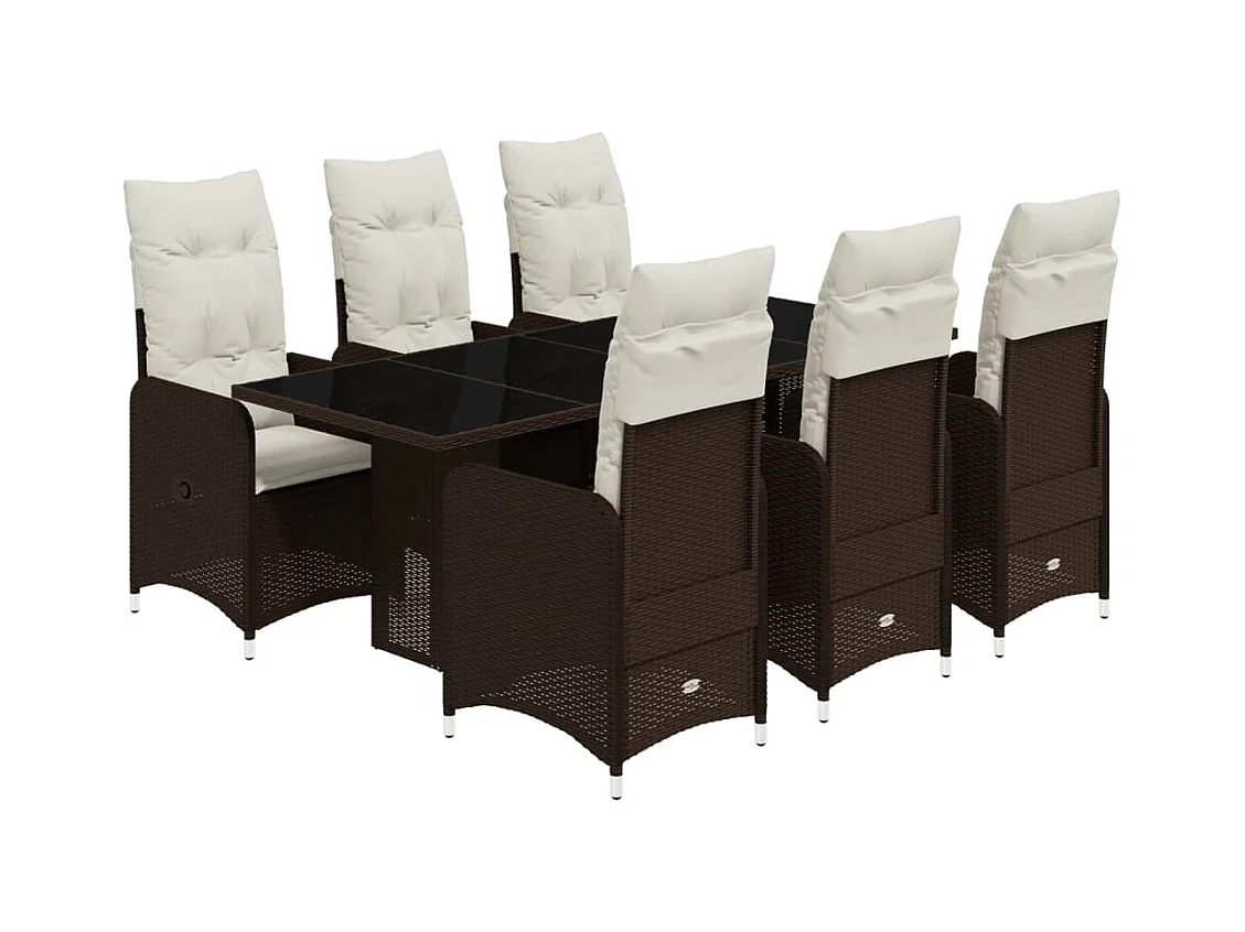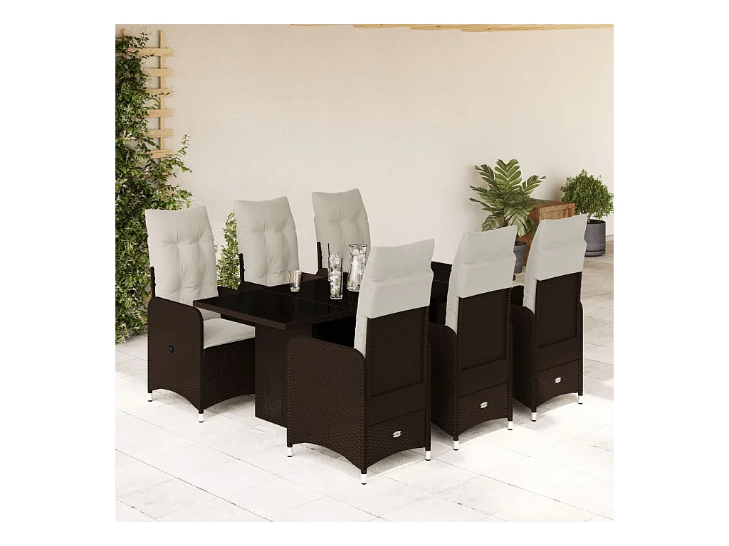 Ensemble de bistro de jardin 7 pcs coussins marron poly rotin
