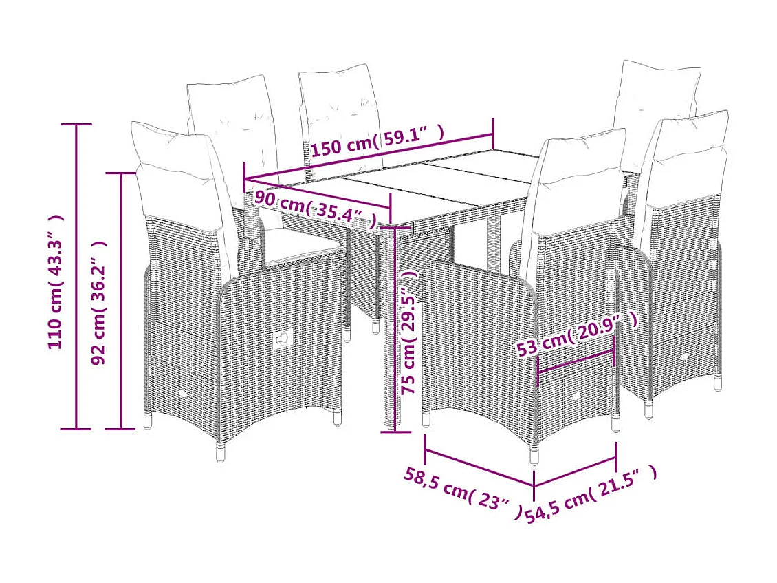 Ensemble de bistro de jardin 7 pcs coussins marron poly rotin