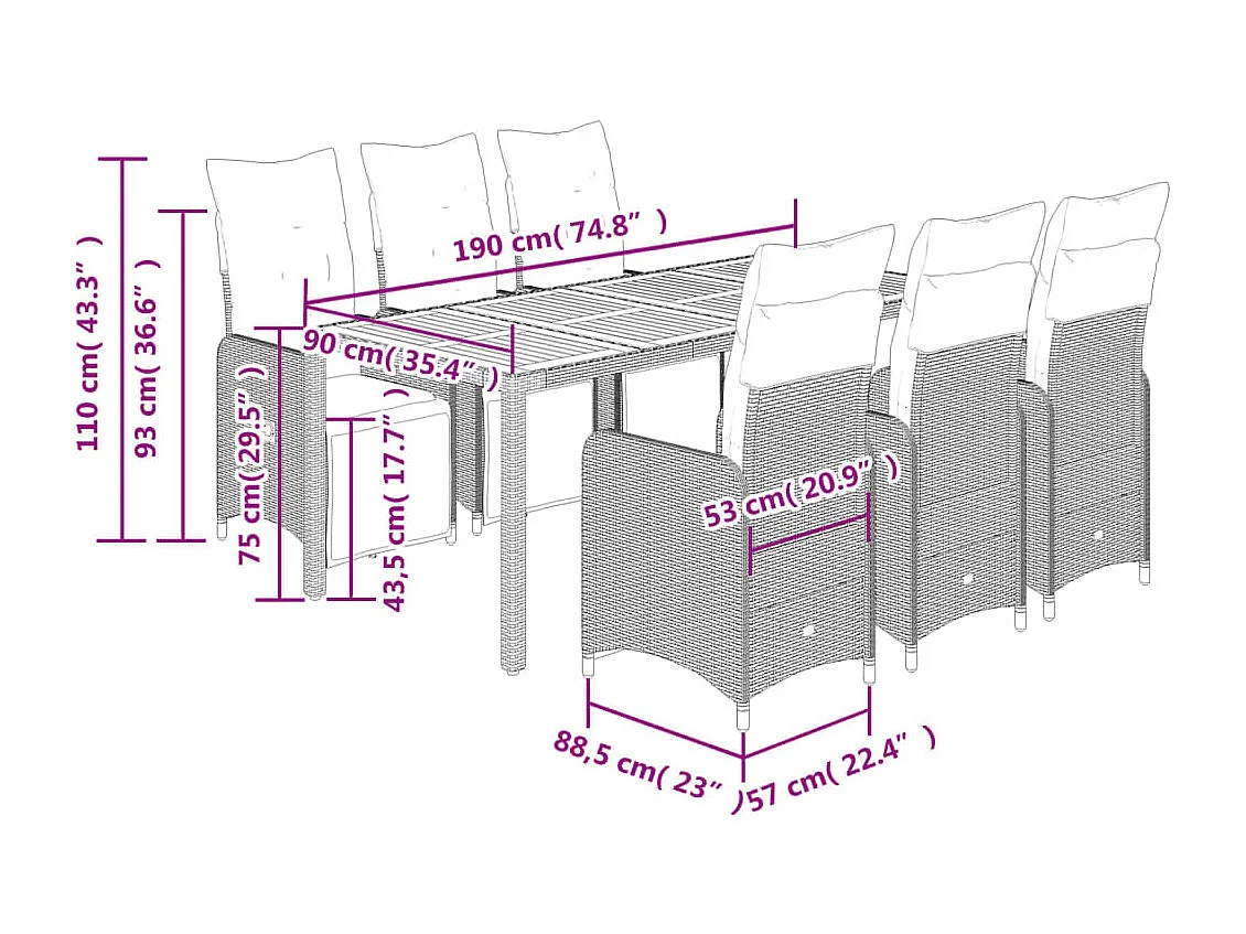 Ensemble de bistro de jardin 7 pcs coussins noir poly rotin