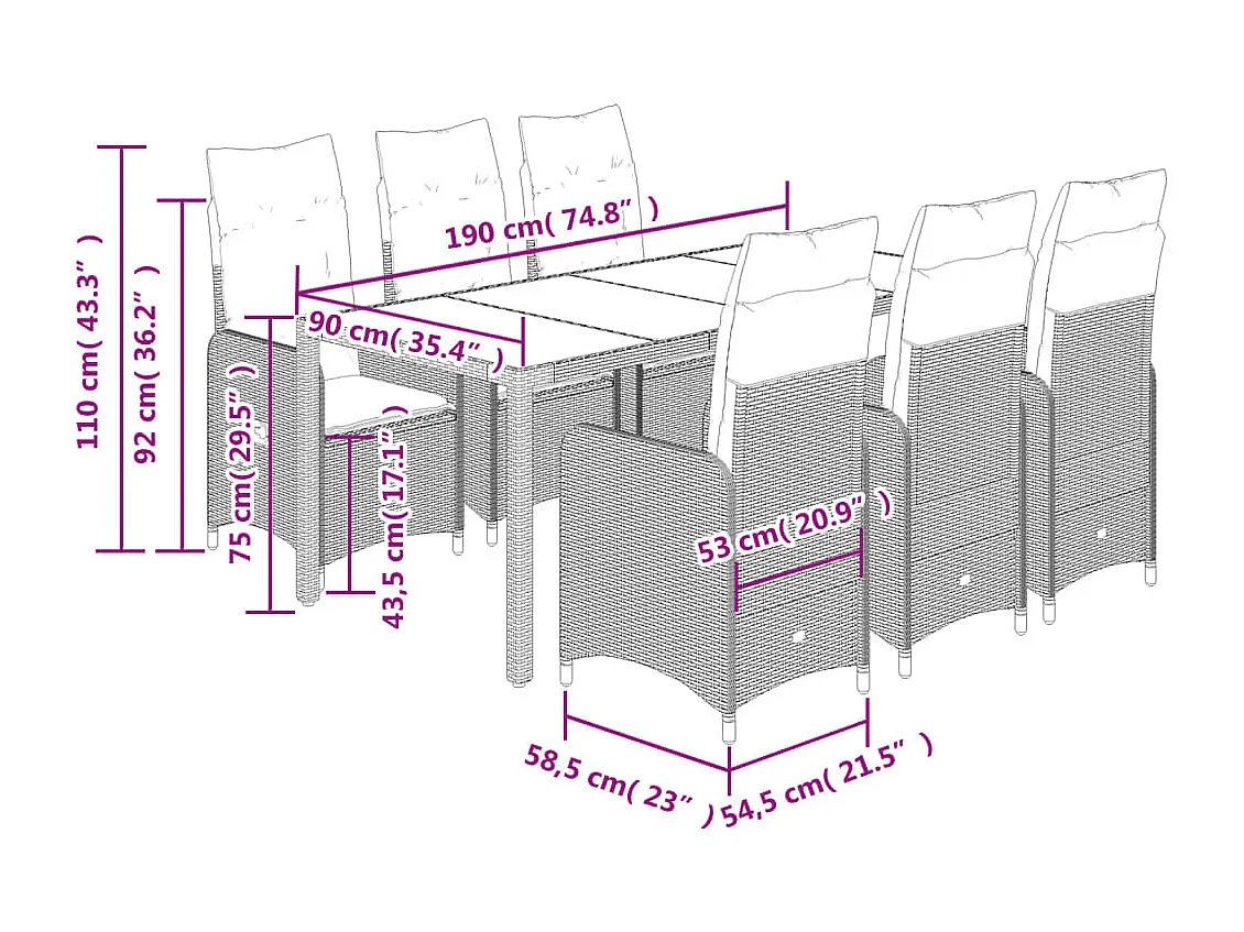 Ensemble de bistro de jardin 7 pcs coussins noir poly rotin