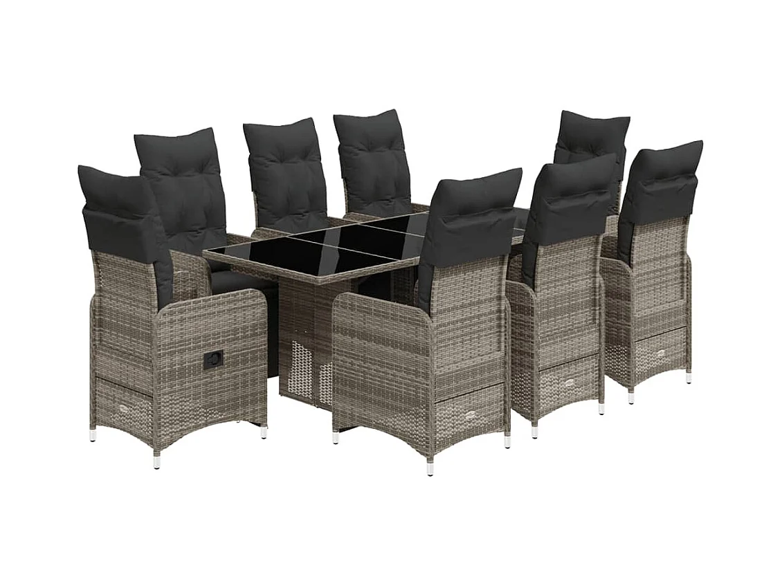 Ensemble de bistro de jardin 9 pcs coussins gris poly rotin