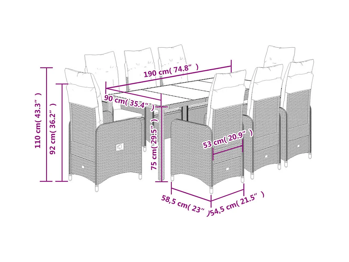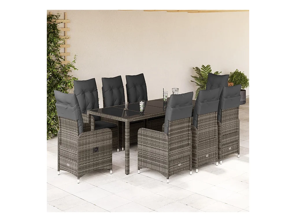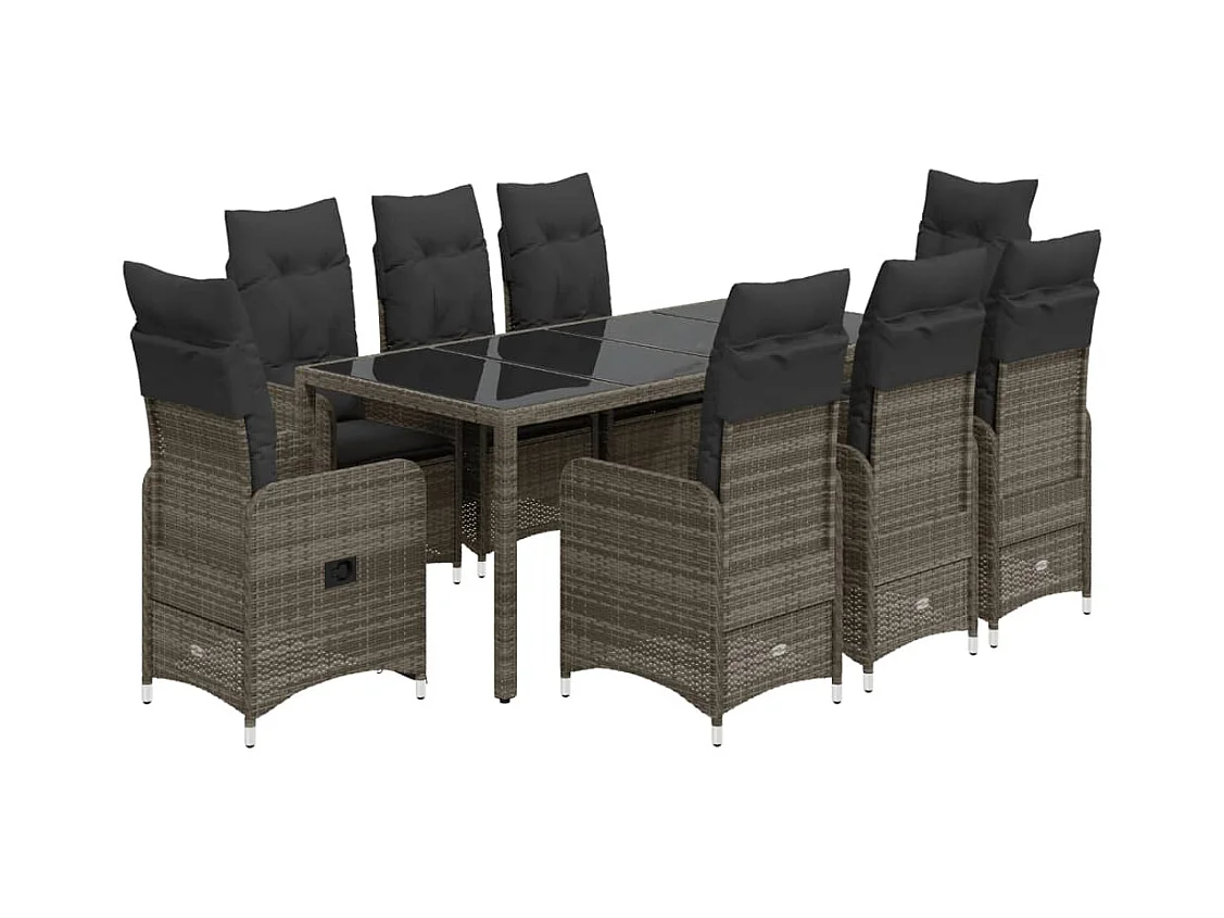 Ensemble de bistro de jardin 9 pcs coussins gris poly rotin