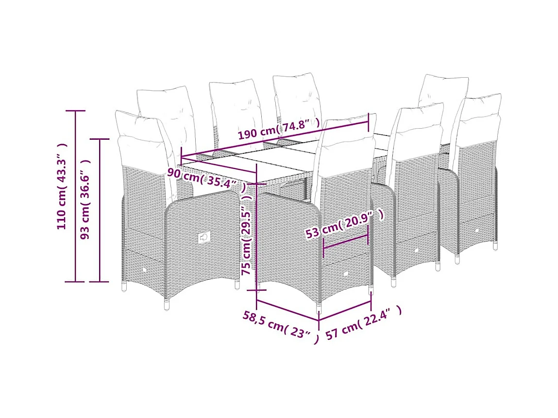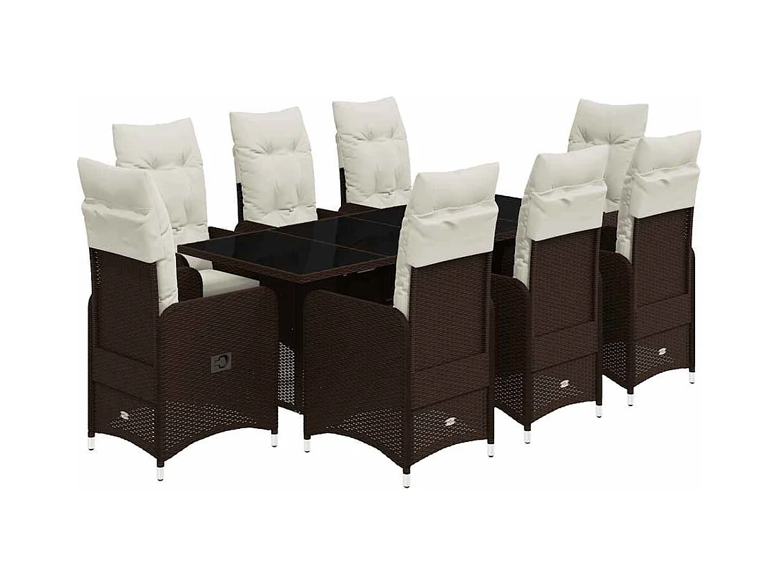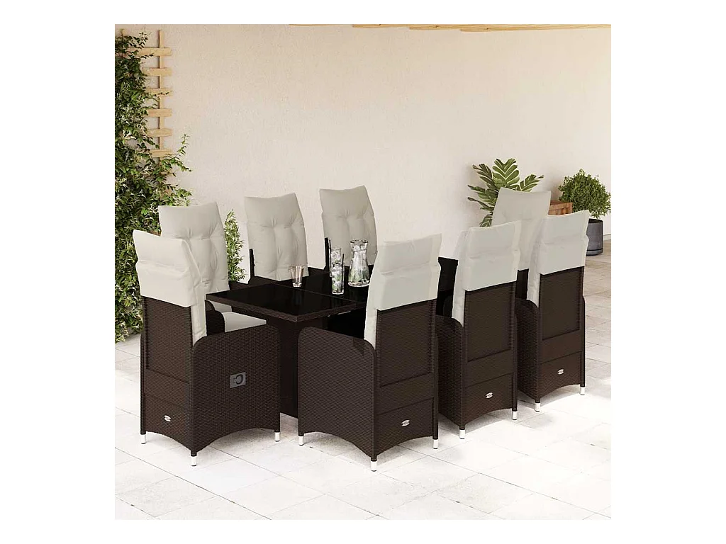 Ensemble de bistro de jardin 9 pcs coussins marron poly rotin