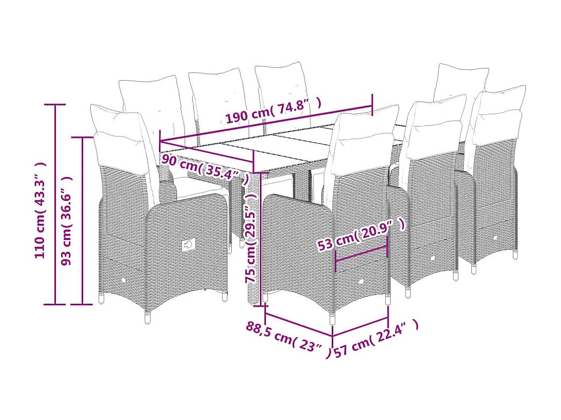 Ensemble de bistro de jardin 9 pcs coussins noir poly rotin