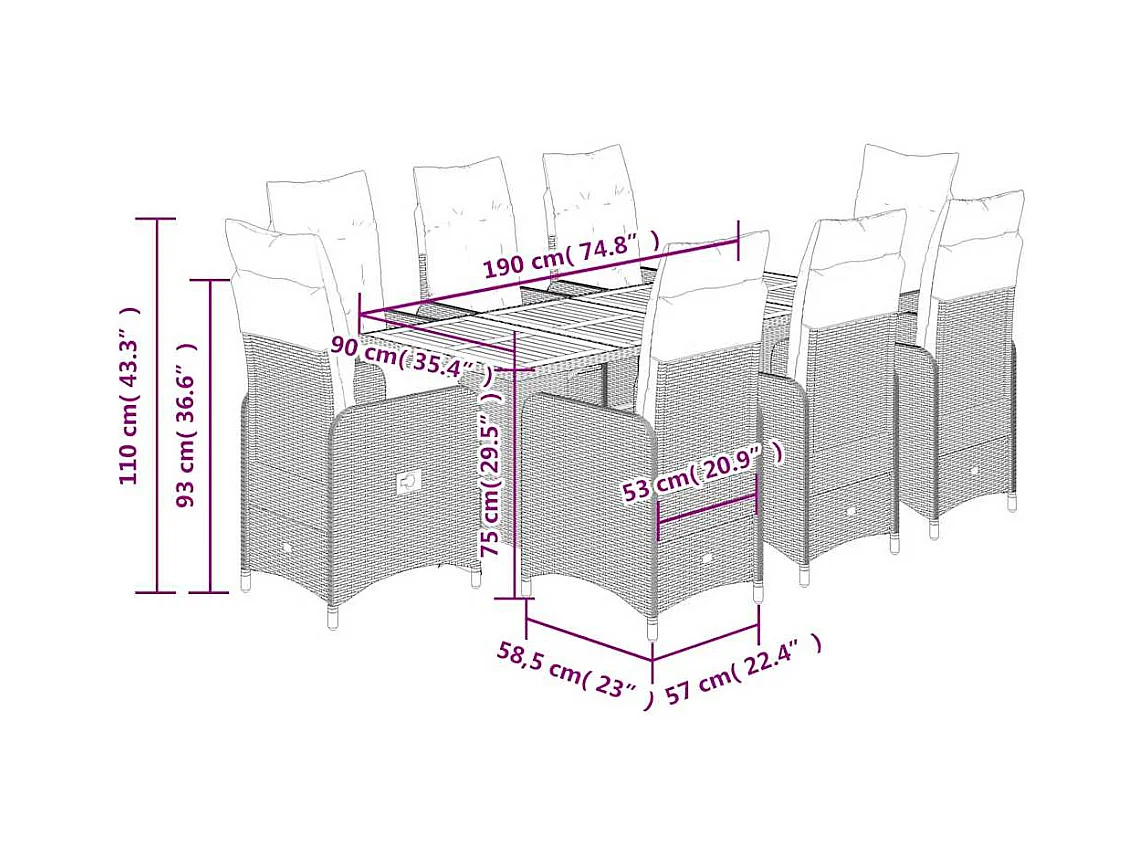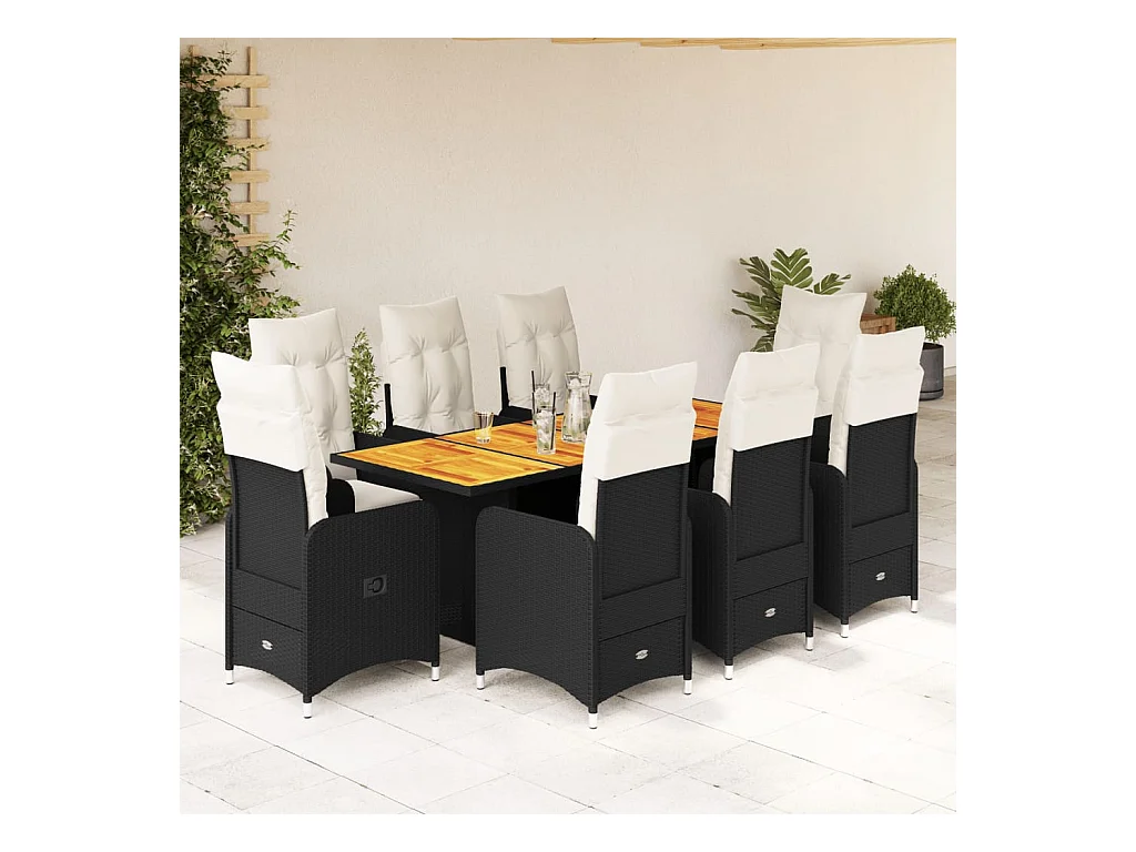 Ensemble de bistro de jardin 9 pcs coussins noir poly rotin