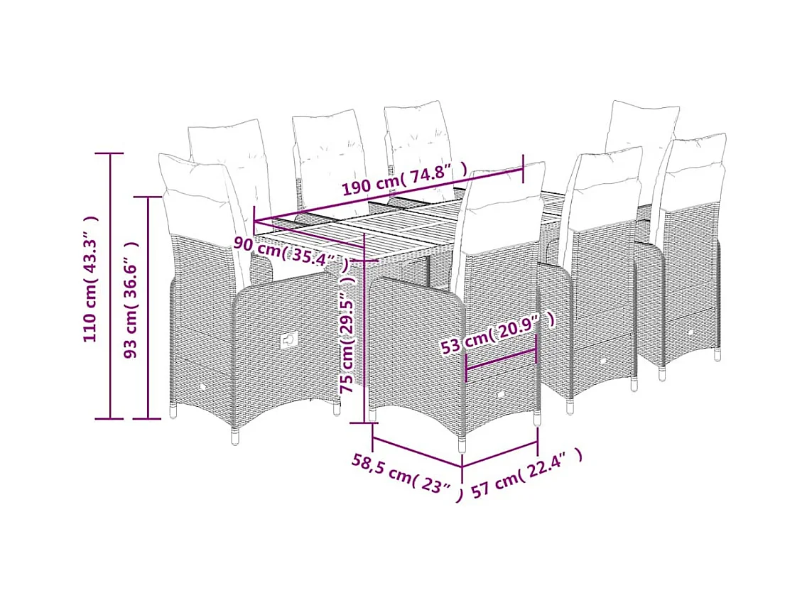 Salon de jardin 10 pcs avec coussins noir résine tressée