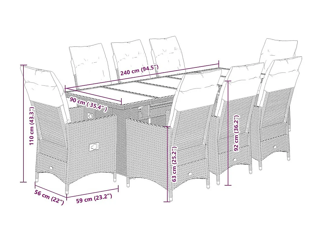 Ensemble de bistro de jardin 9 pcs coussins noir poly rotin