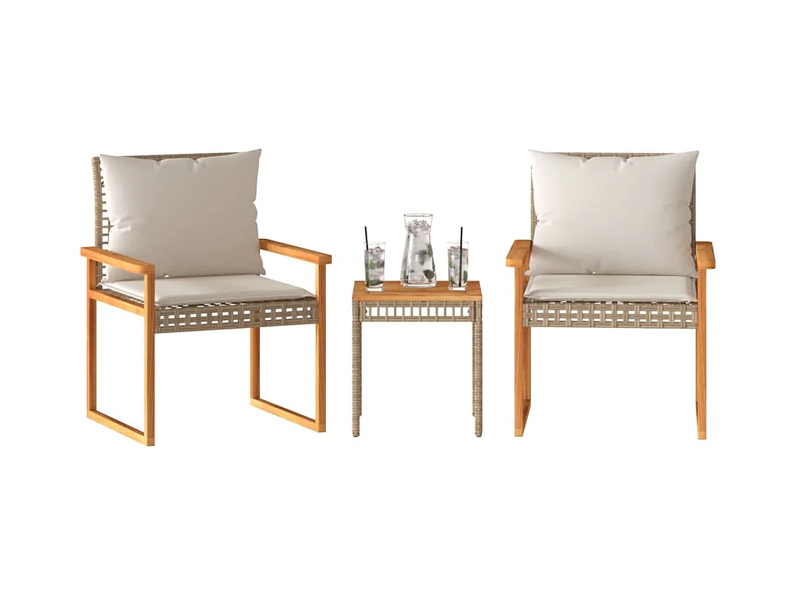 Ensemble de bistro et coussins 3 pcs mélange beige rotin acacia FR12766