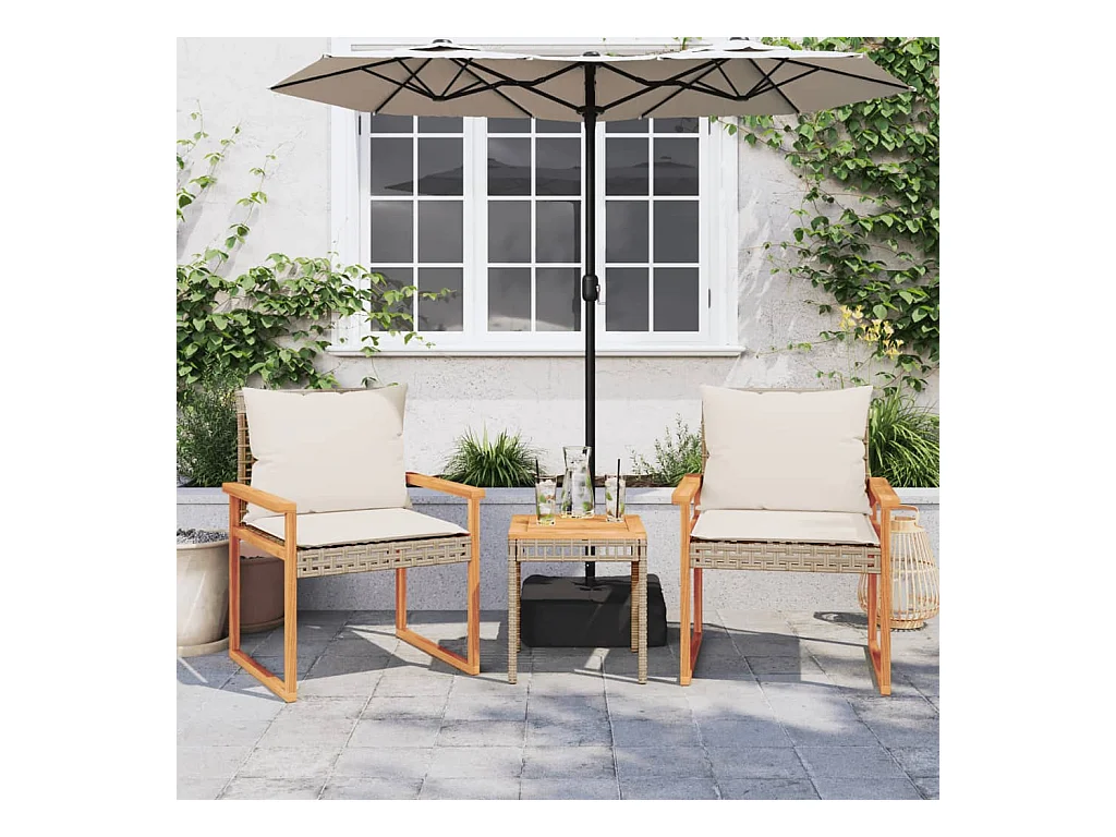 Ensemble à manger de jardin et coussins 3pcs beige rotin acacia FR84973
