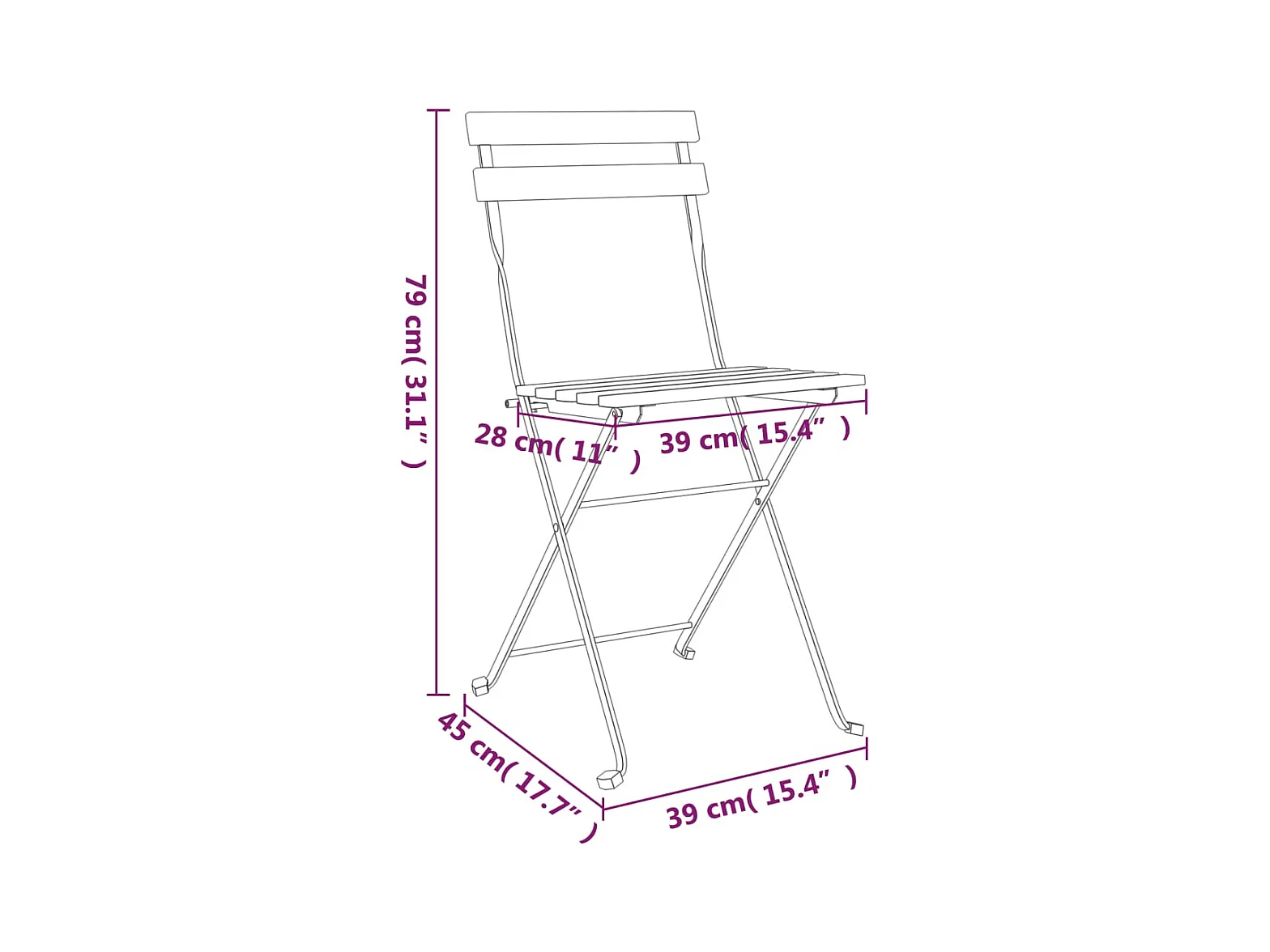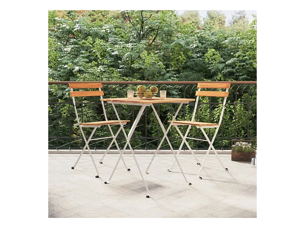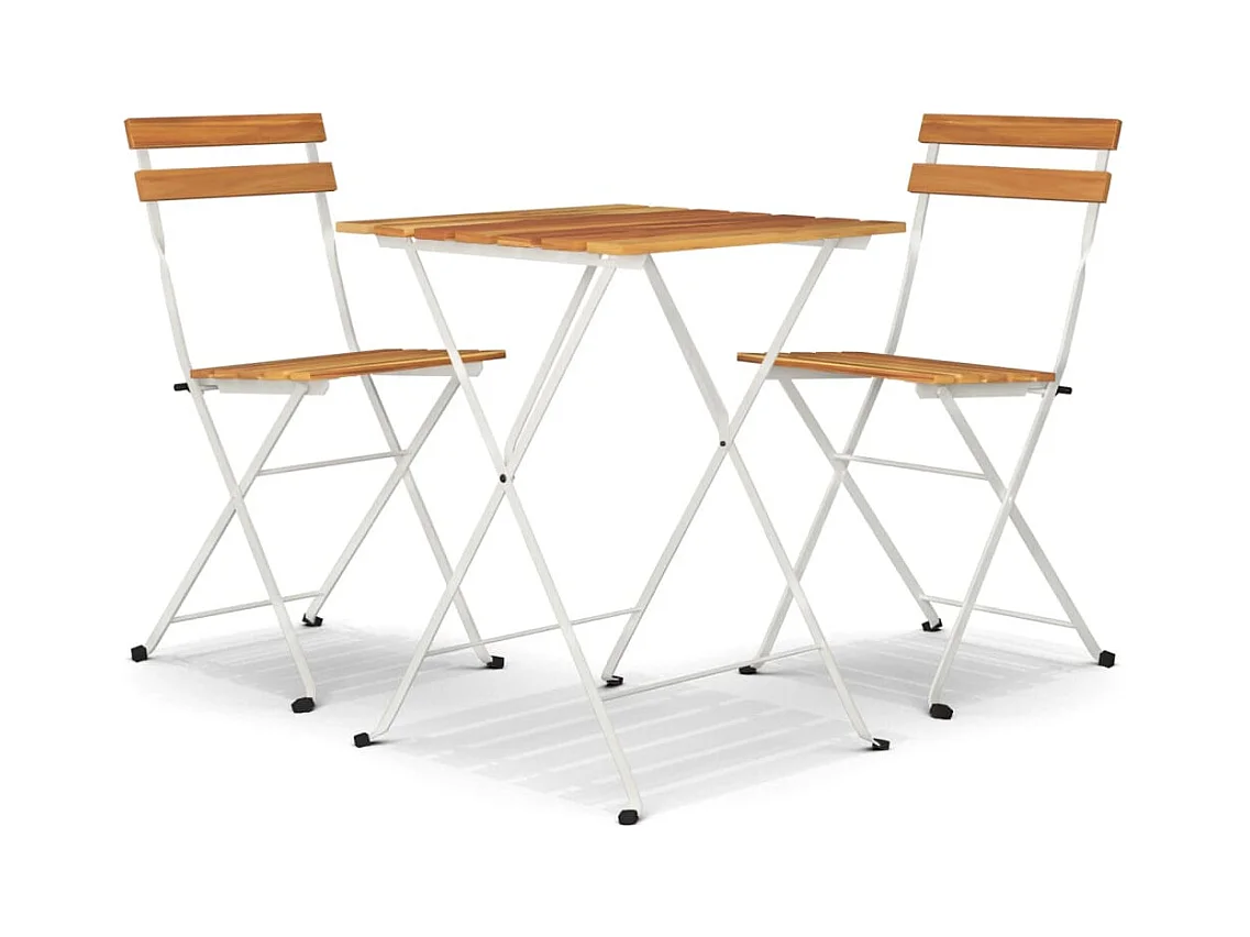 Ensemble de bistro pliable 3 pcs Bois d'acacia solide et acier