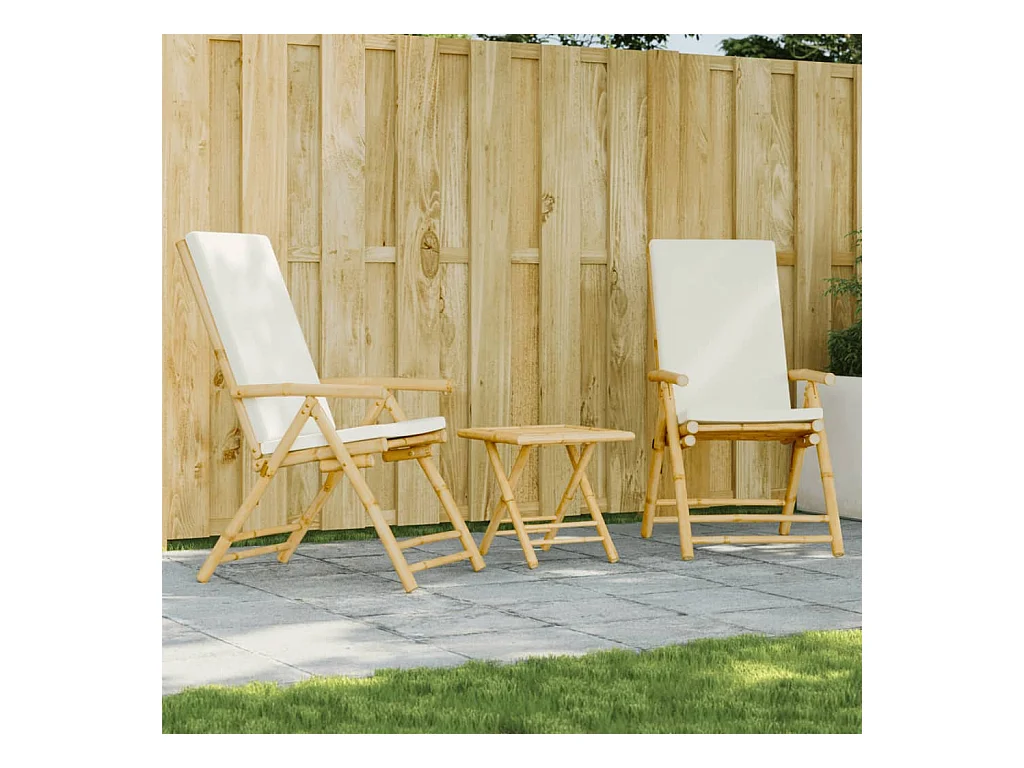 Ensemble de bistro pliante 3 pcs et coussins blanc crème bambou FR94374