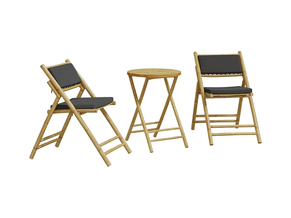 Ensemble de bistro pliante 3 pcs et coussins gris foncé bambou