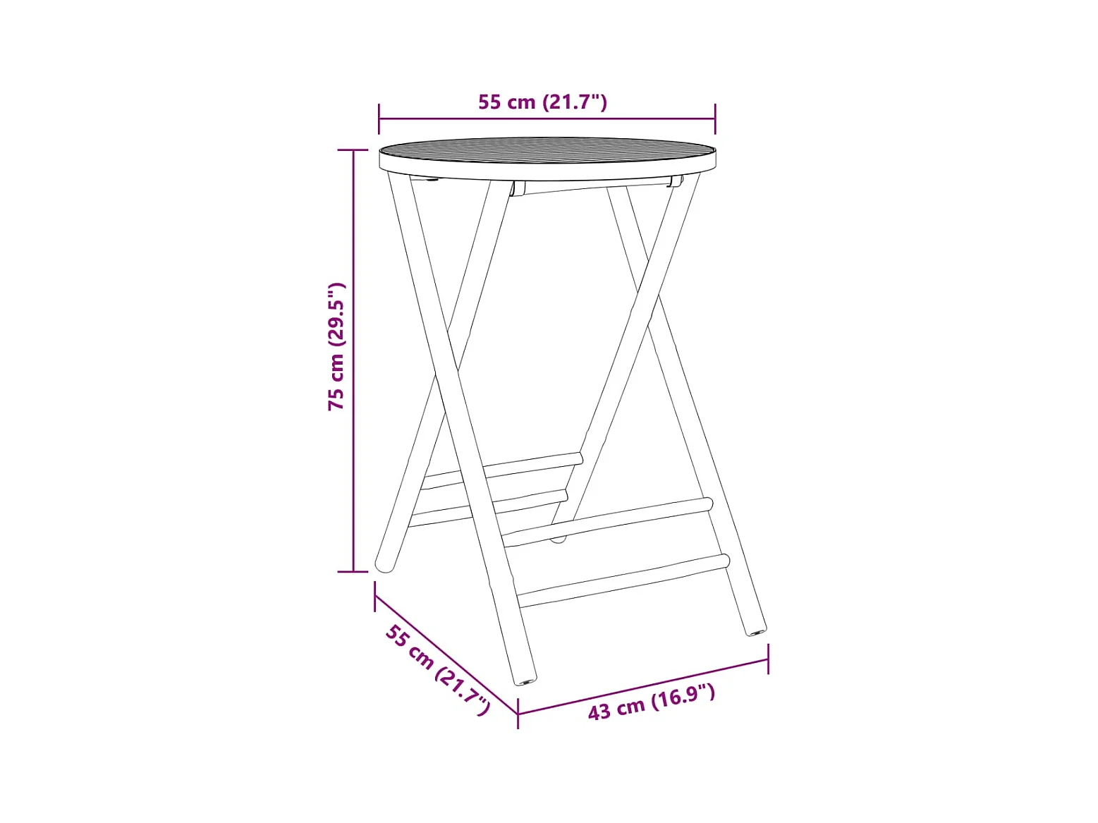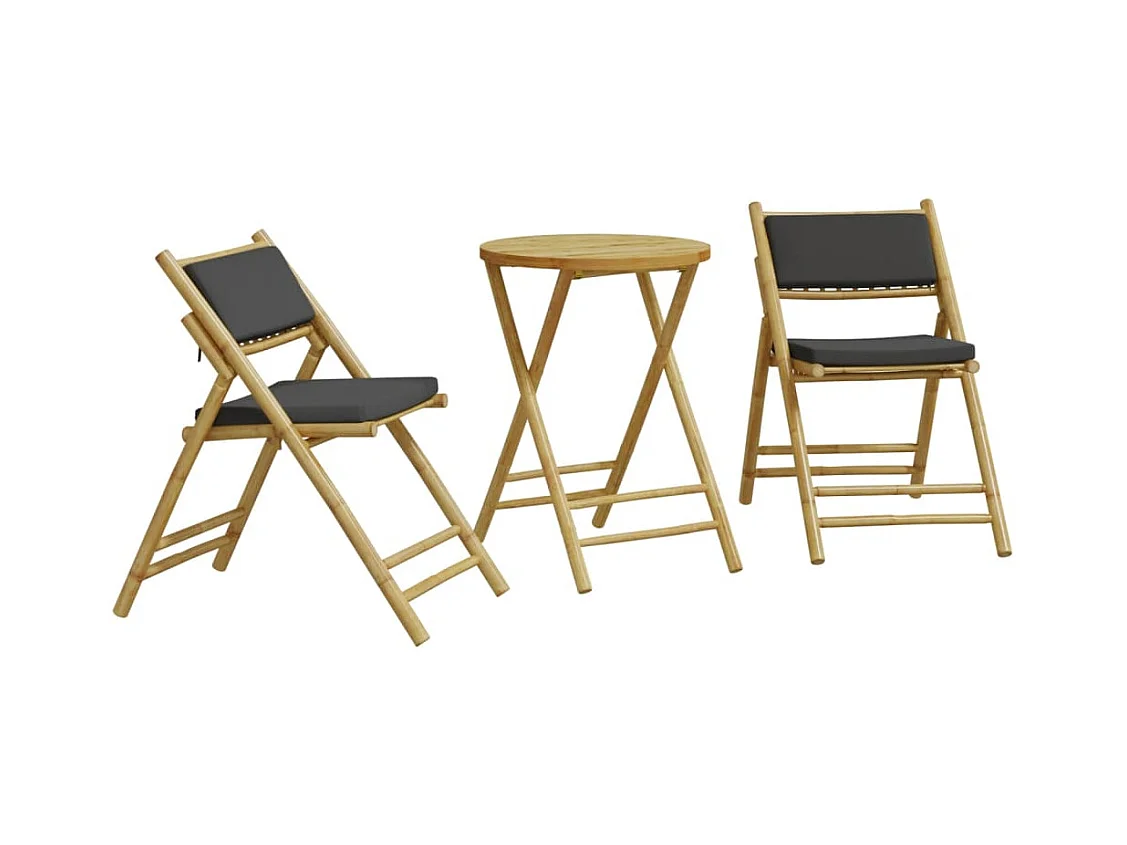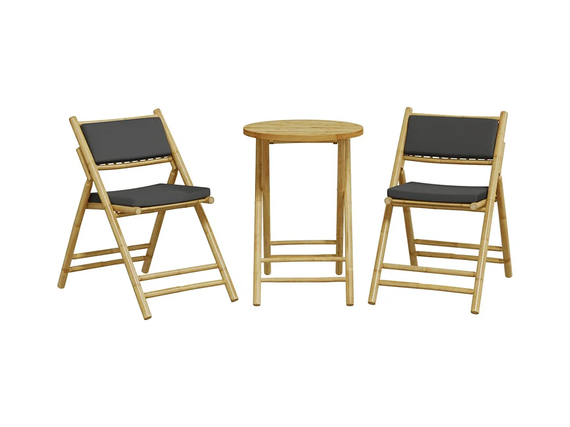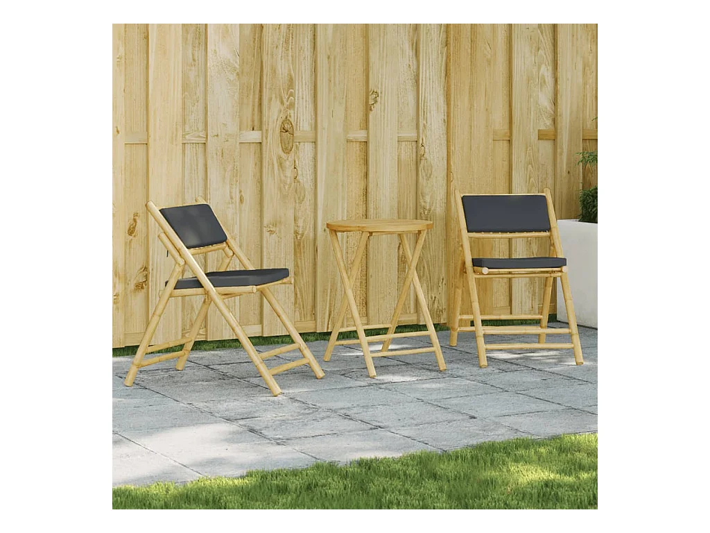 Ensemble de bistro pliante 3 pcs et coussins gris foncé bambou