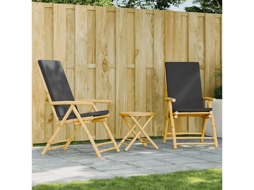 Ensemble de bistro pliante 3 pcs et coussins gris foncé bambou