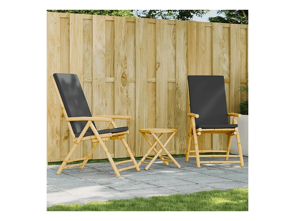 Ensemble de bistro pliante 3 pcs et coussins gris foncé bambou FR81996