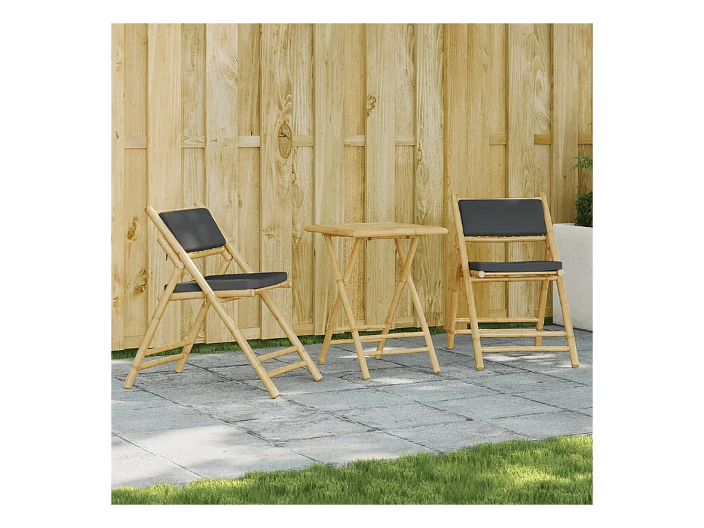 Ensemble de bistro pliante 3 pcs et coussins gris foncé bambou FR81996