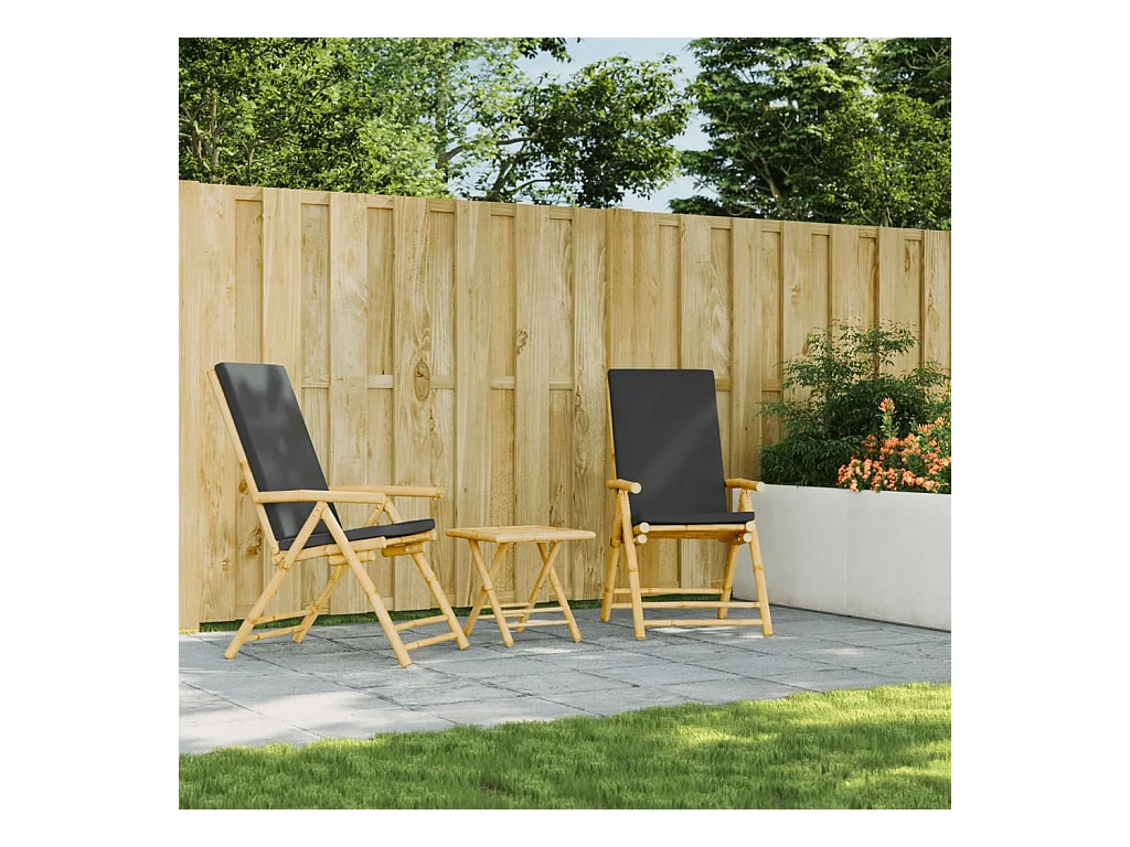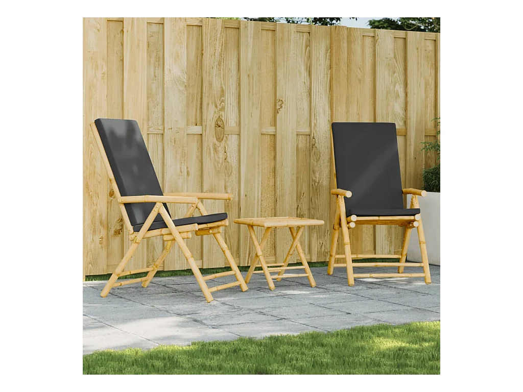 Ensemble de bistro pliante 3 pcs et coussins gris foncé bambou FR80713