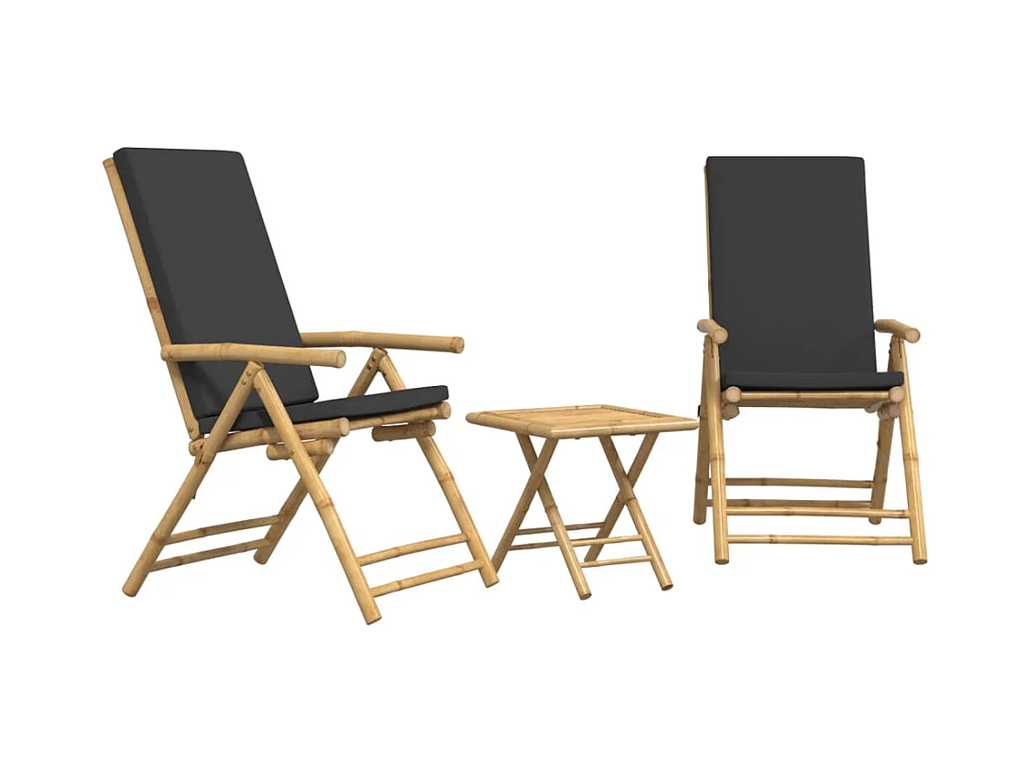 Ensemble de bistro pliante 3 pcs et coussins gris foncé bambou FR81996