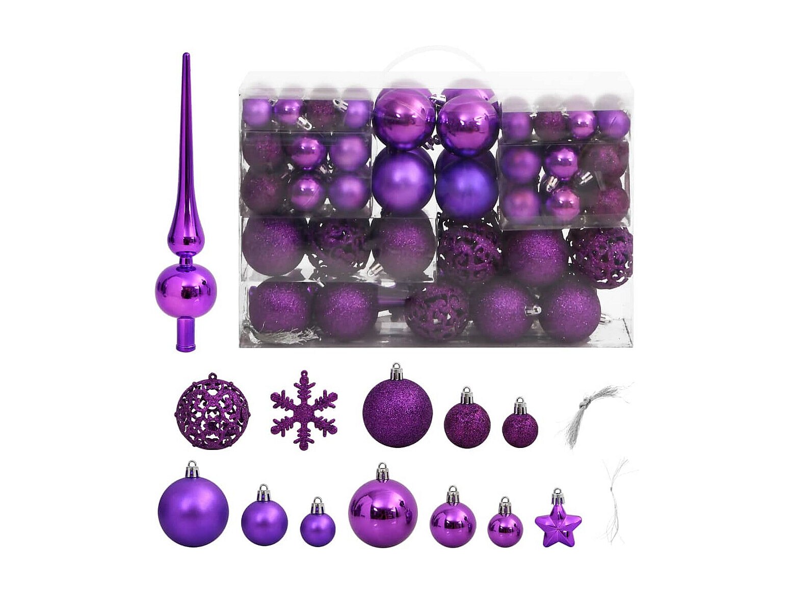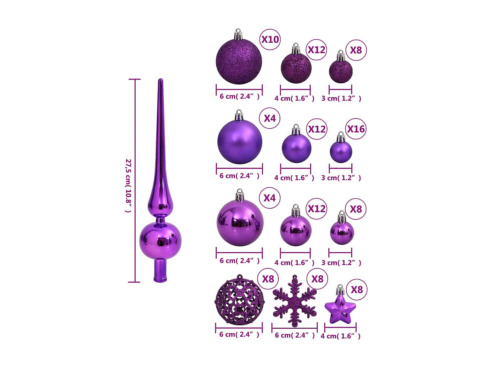 Ensemble de boules de Noël 111 pièces violet polystyrène