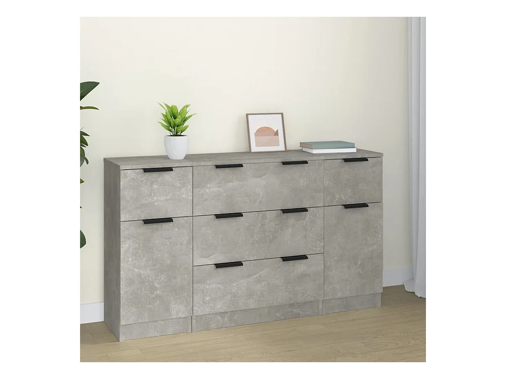Ensemble de buffets 3 pcs Gris béton Bois d'ingénierie FR85459