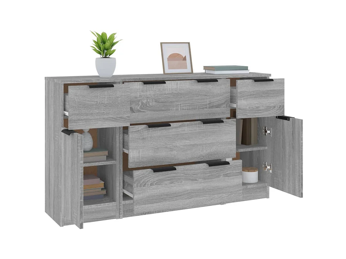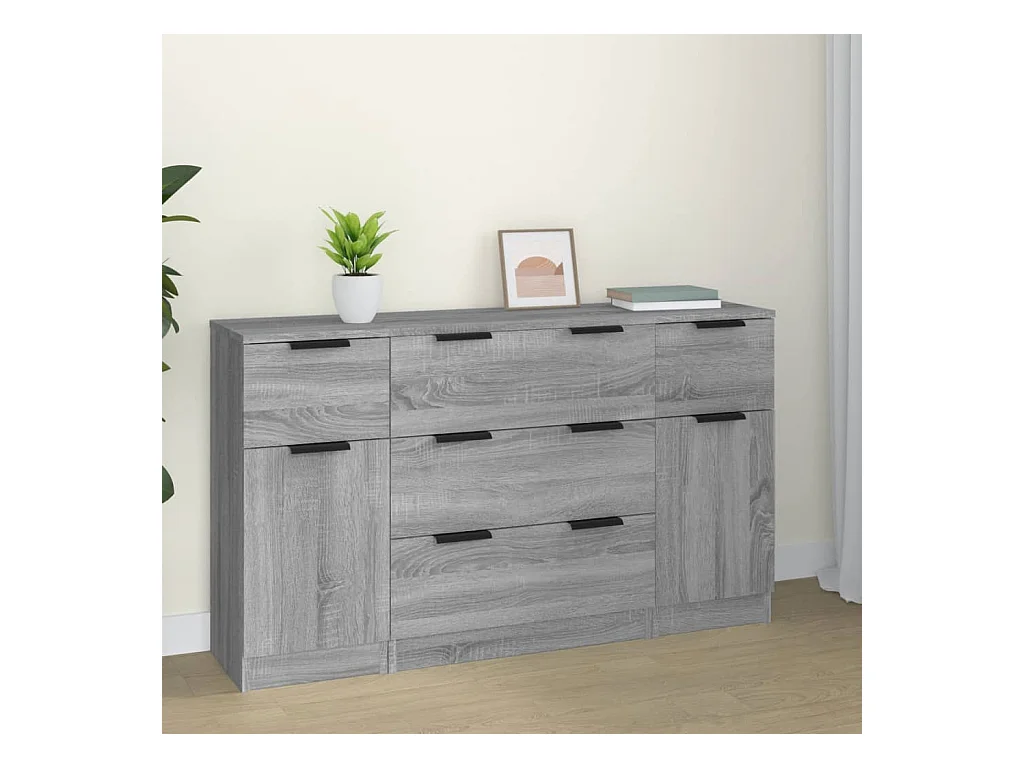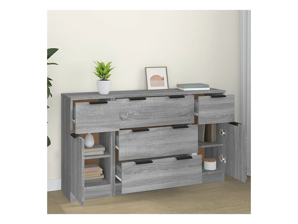 Buffets 3 pcs Sonoma gris Bois d'ingénierie EGER86652