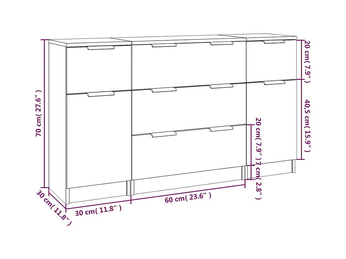 Buffets 3 pièces Sonoma gris Bois d'ingénierie