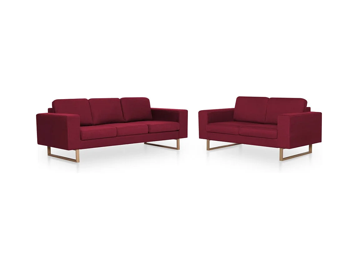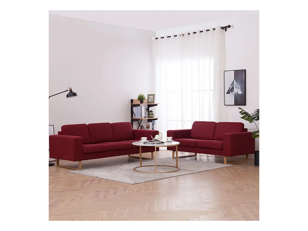 Ensemble de canapés 2 pièces rouge bordeaux tissu