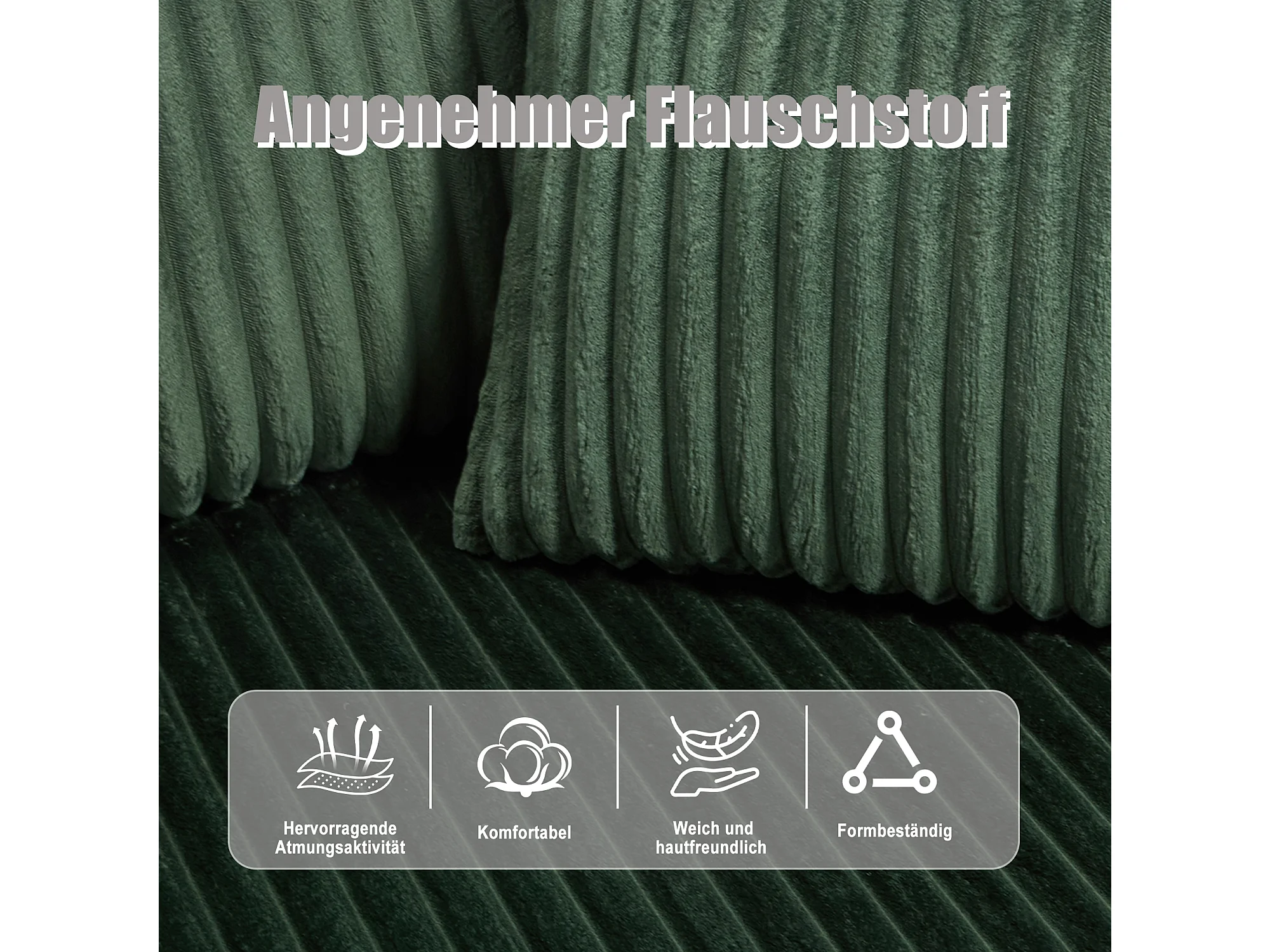 Ensemble de canapé 3 places - 257 x 160 x 80 cm - avec 5 coussins - combinaison à faire soi-même - velours - vert