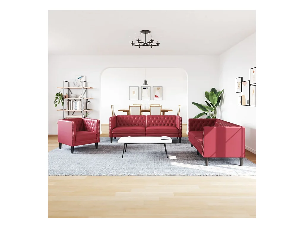 Ensemble de canapés 3 pièces rouge bordeaux velours
