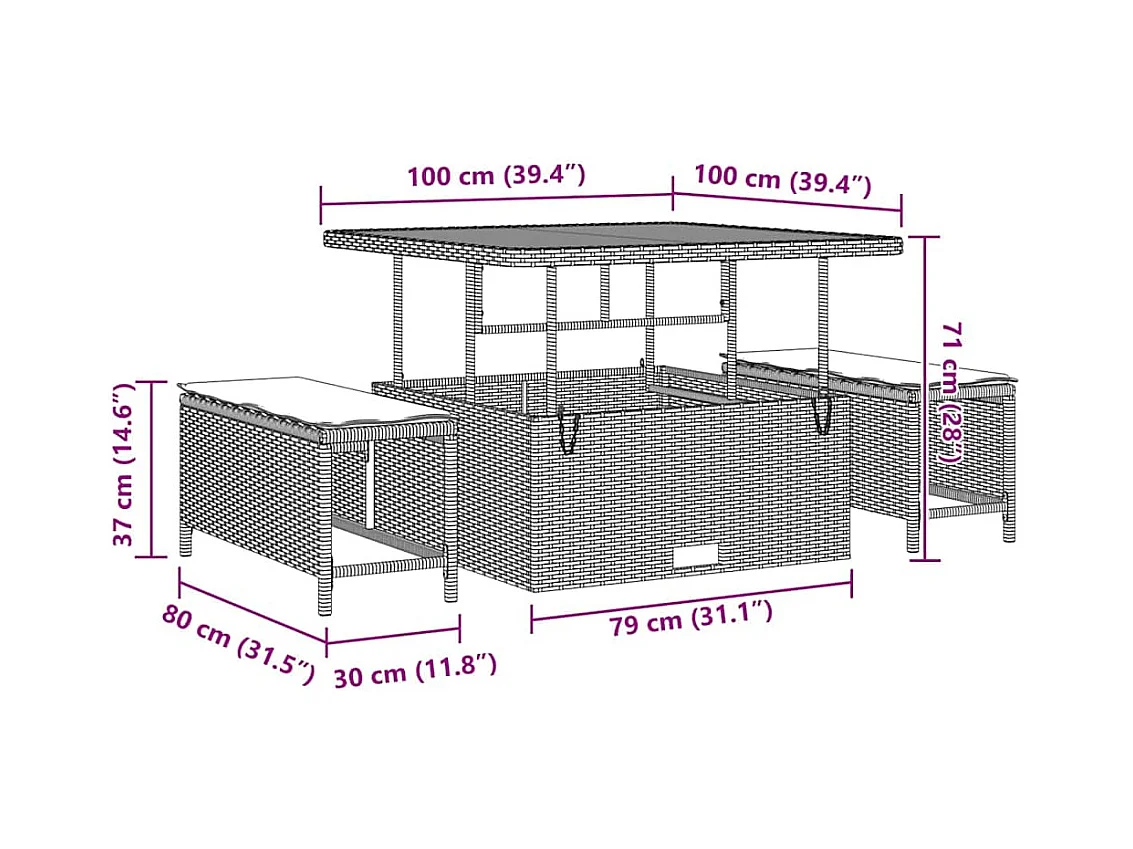 Ensemble de canapé de jardin 6 pcs Gris 264 x 154 x 85 cm