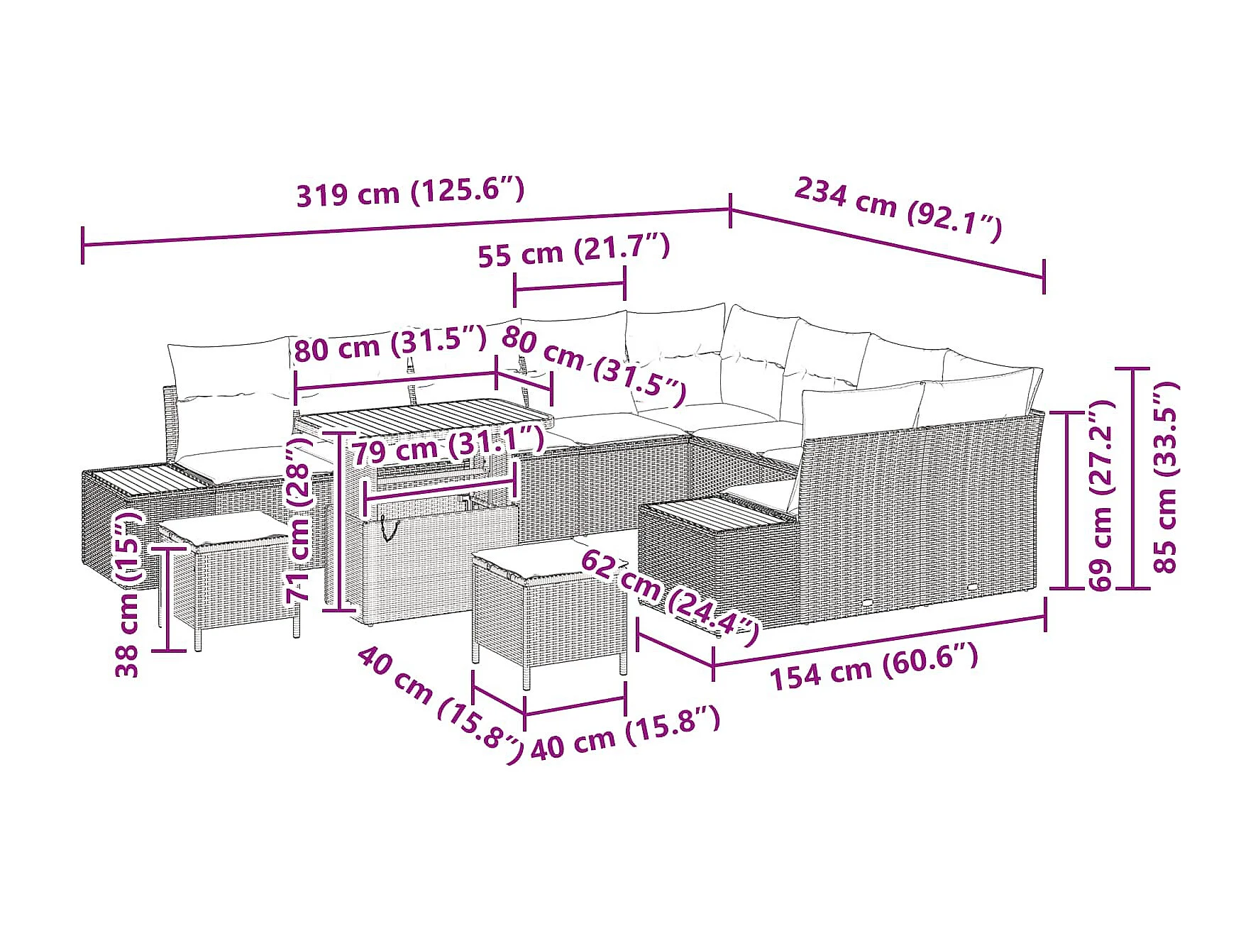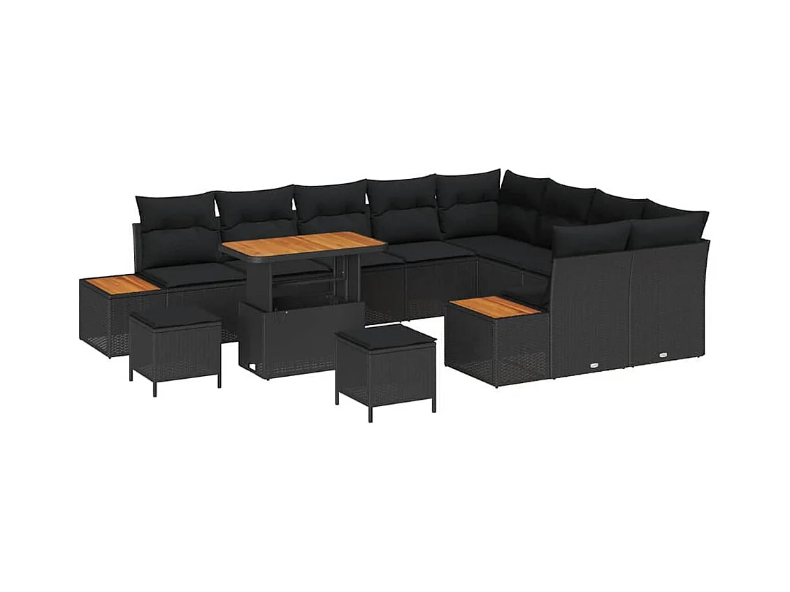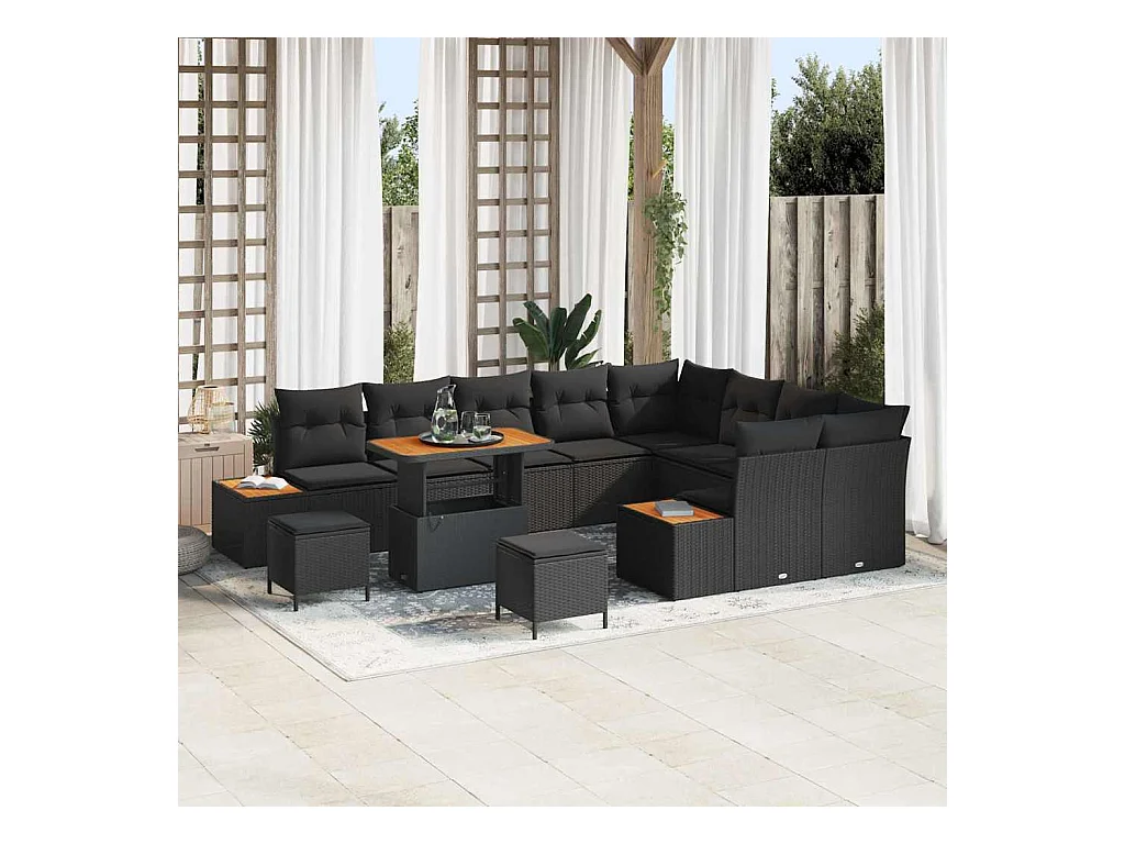 Ensemble de canapé de jardin 12 pcs Noir Poly rotin