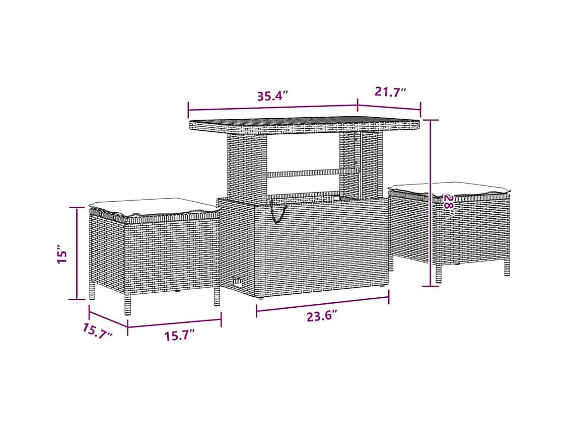 Canapé de jardin 2 places avec auvent et tabourets noir rotin