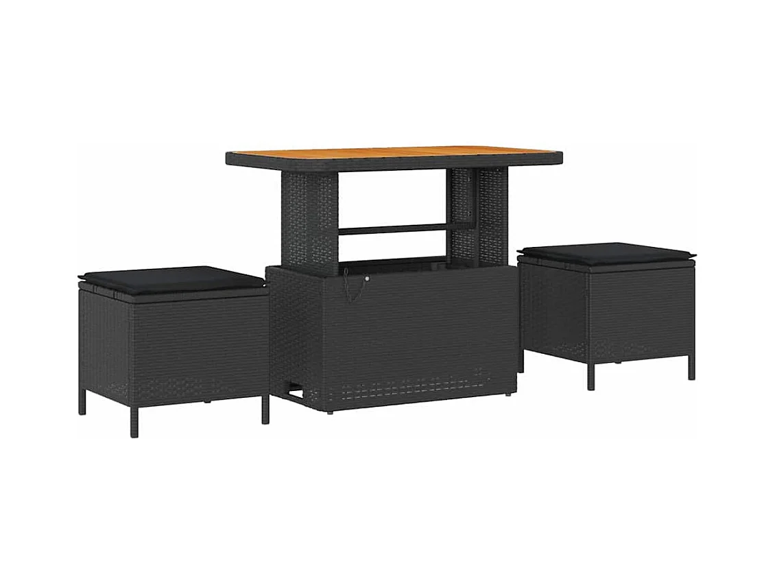 Salon de jardin 5 pcs avec coussins noir résine tressée acacia