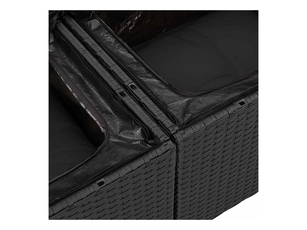 Canapé de jardin et coussins en forme de L noir résine tressée
