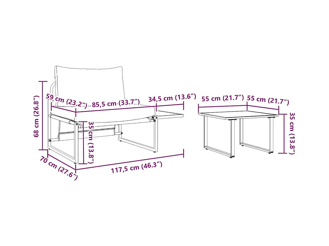 Ensemble de salle à manger pour jardin 2 pcs Taupe Acier