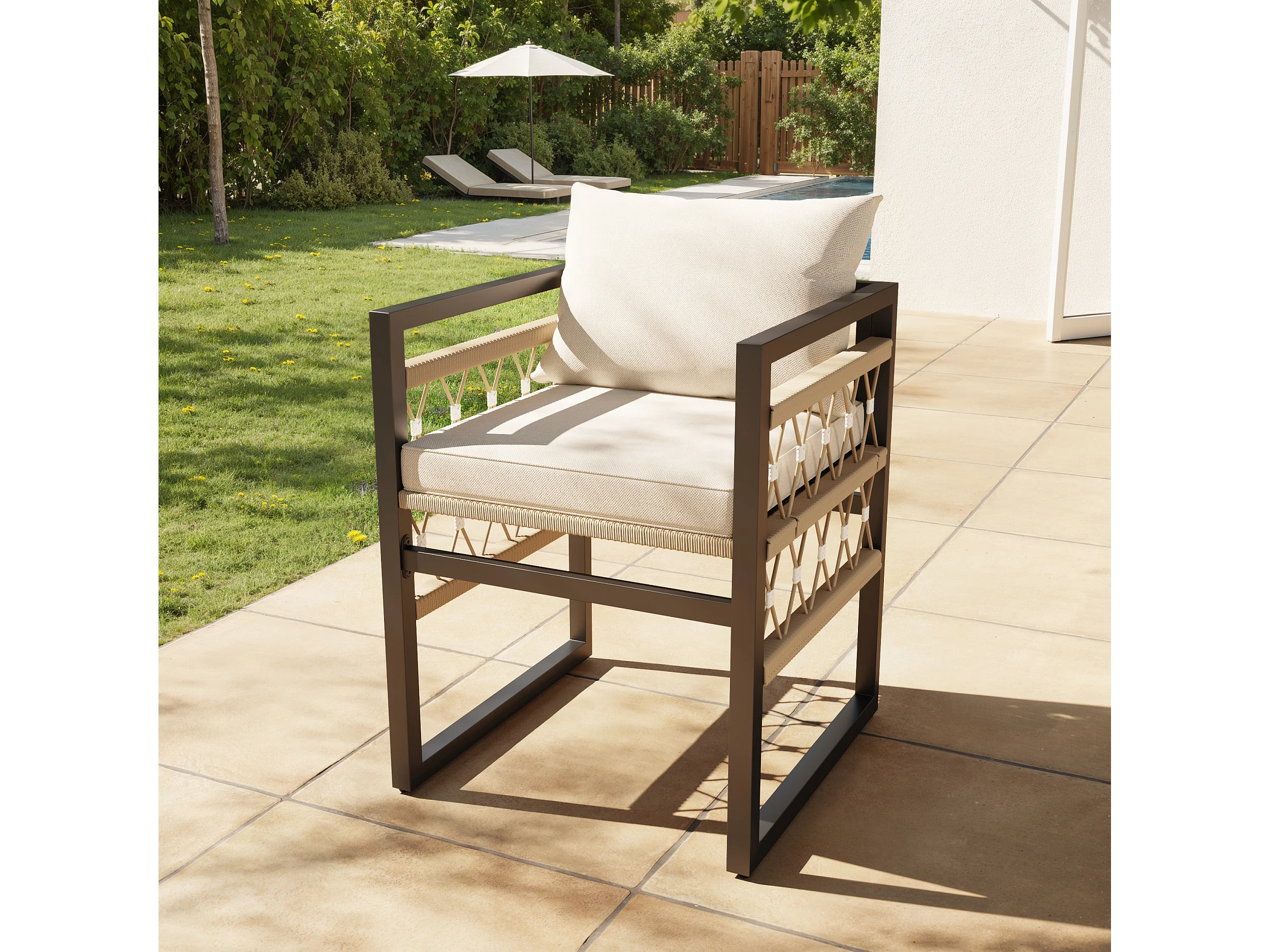Ensemble de canapé de jardin tissé à la main 4 places - avec 4 coussins + 1 table + 4 fauteuils - métal - beige + noir
