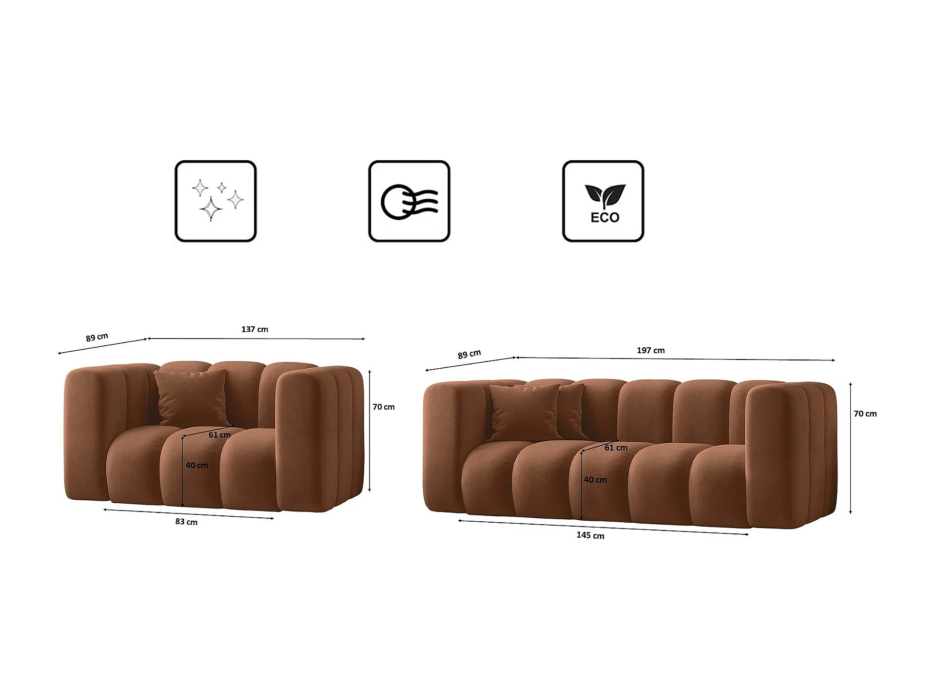 Ensemble de canapés 2+1+1 série Grand stilvol, tissu Salvador Brown