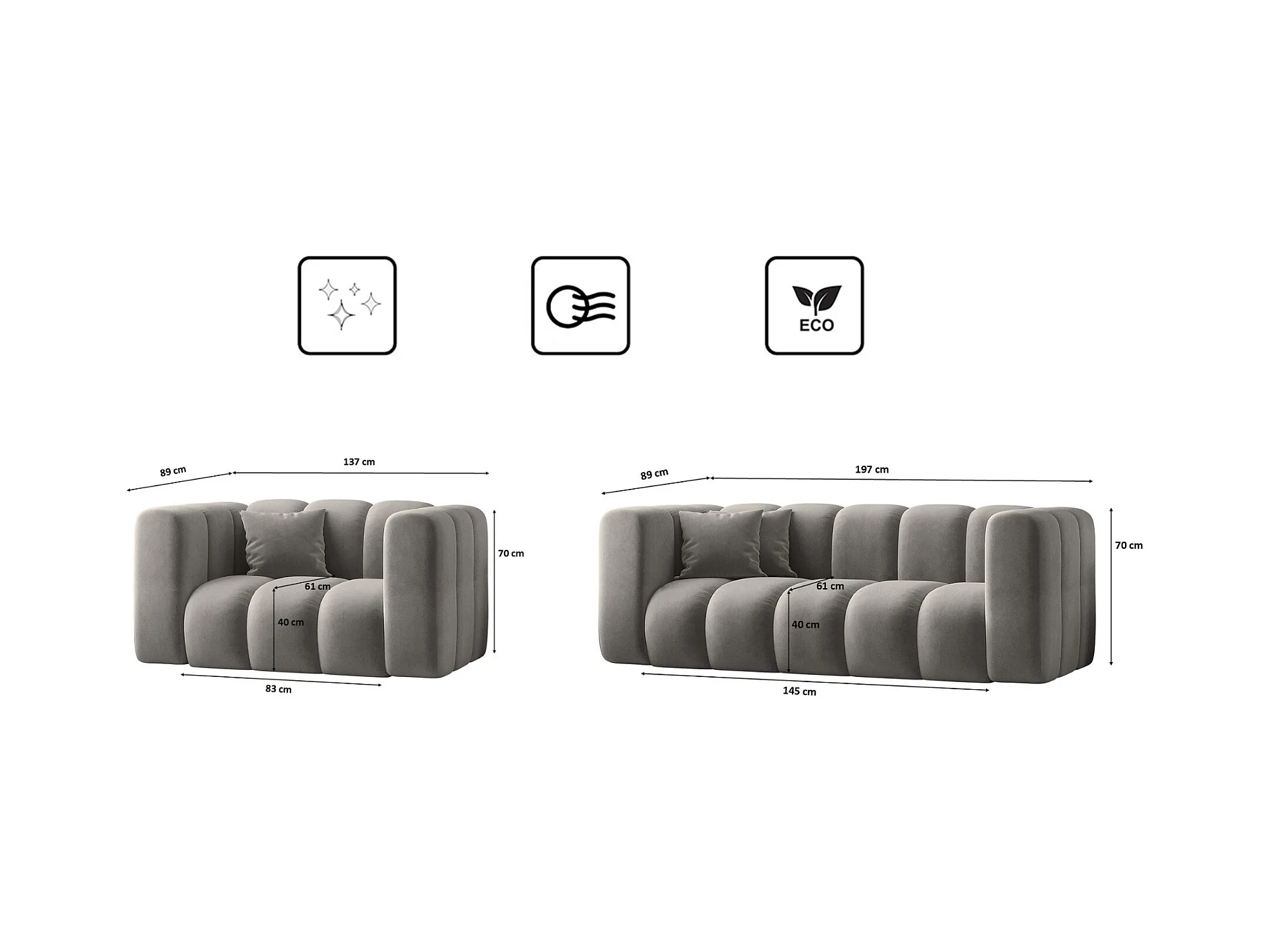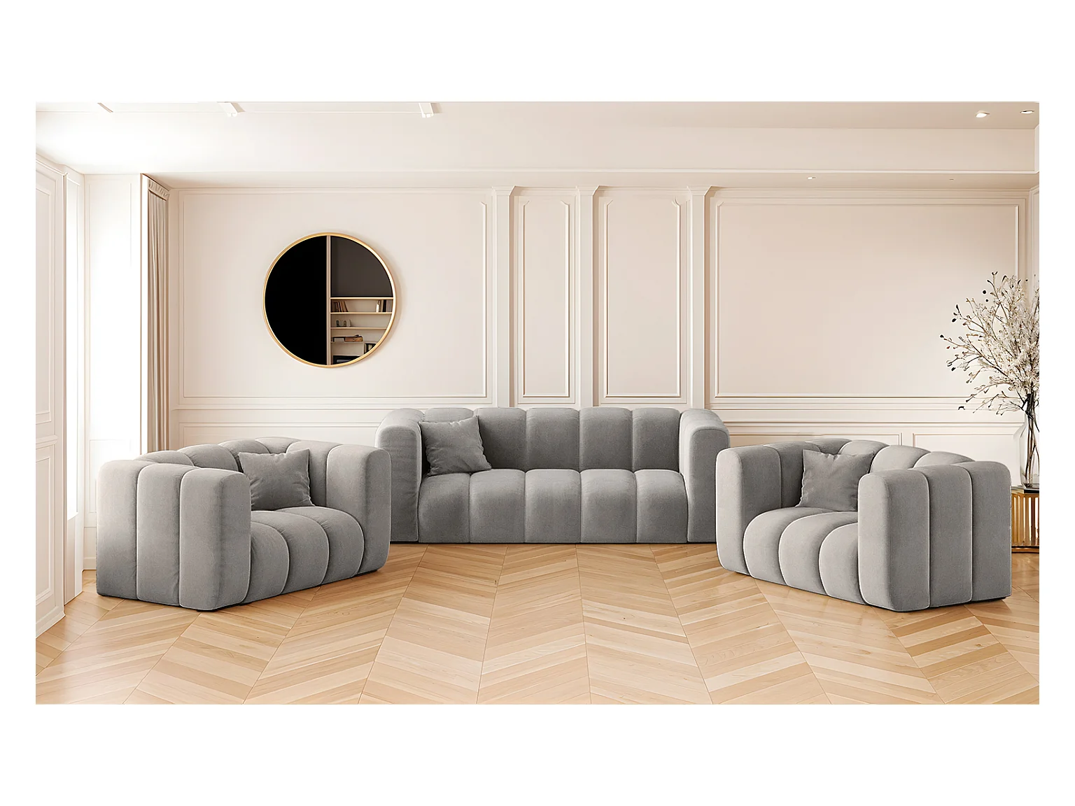 Ensemble de canapés 2+1+1 série Grand stilvol, tissu Salvador Grey