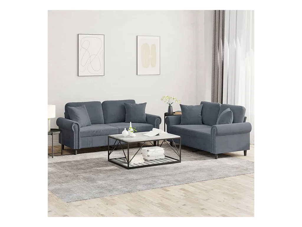 Ensemble de canapés 2 pcs avec coussins gris foncé velours