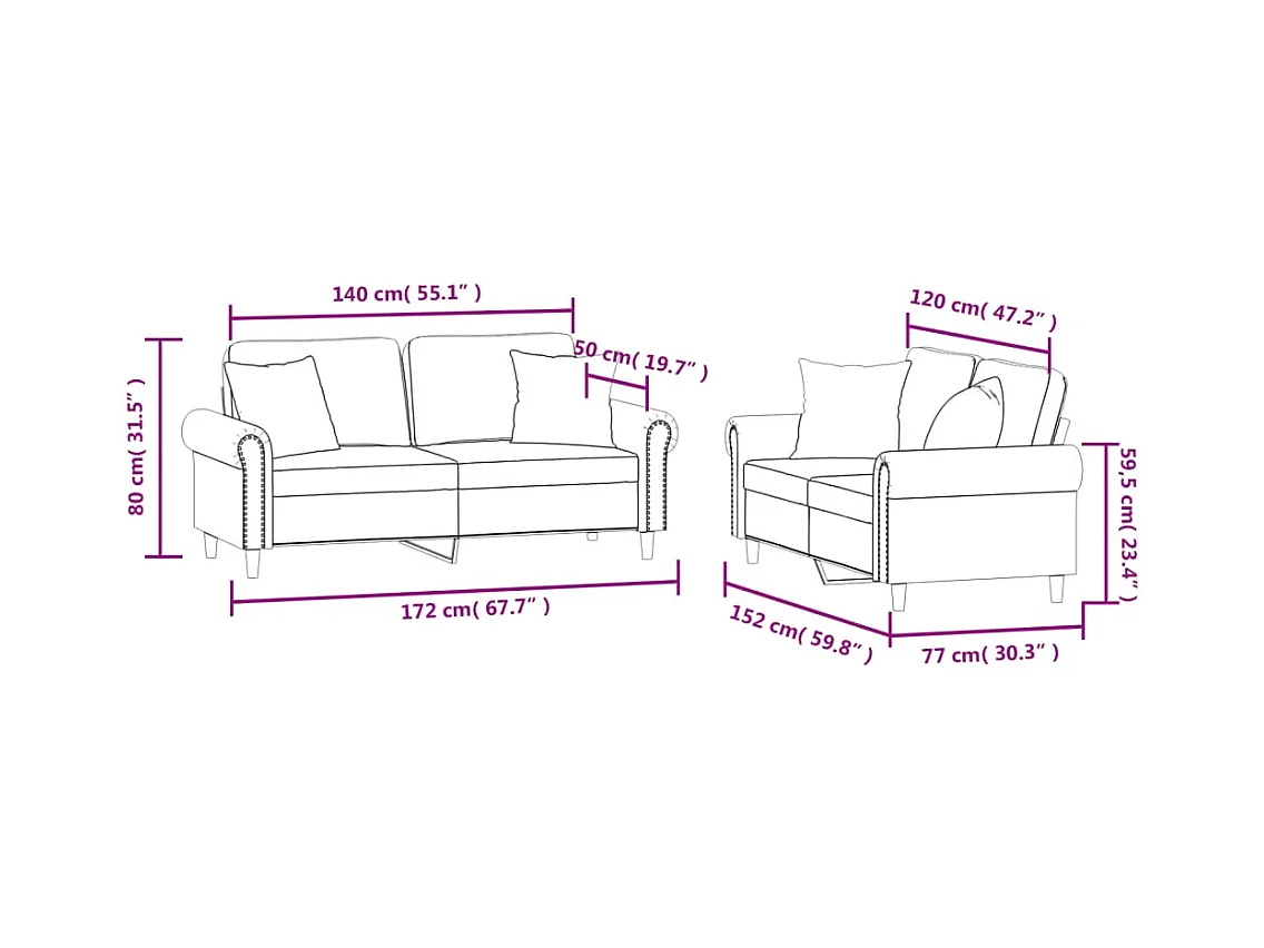 Ensemble de canapés 2 pcs coussins gris clair tissu
