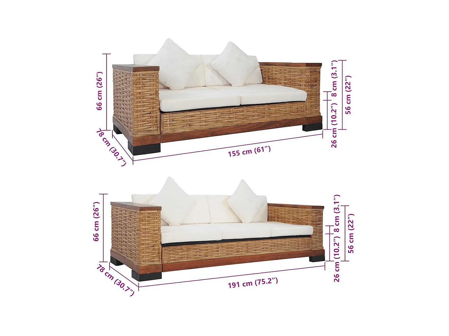 Ensemble de canapés 2 pièces avec coussins Marron Rotin naturel
