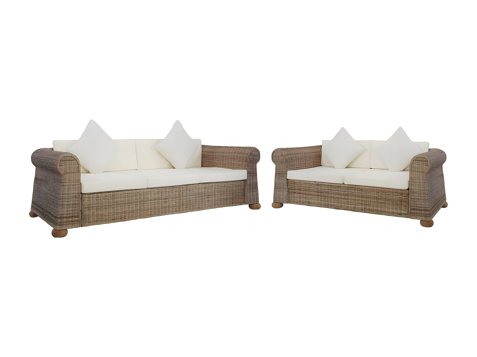 Ensemble de canapés 2 pcs avec coussins Rotin naturel
