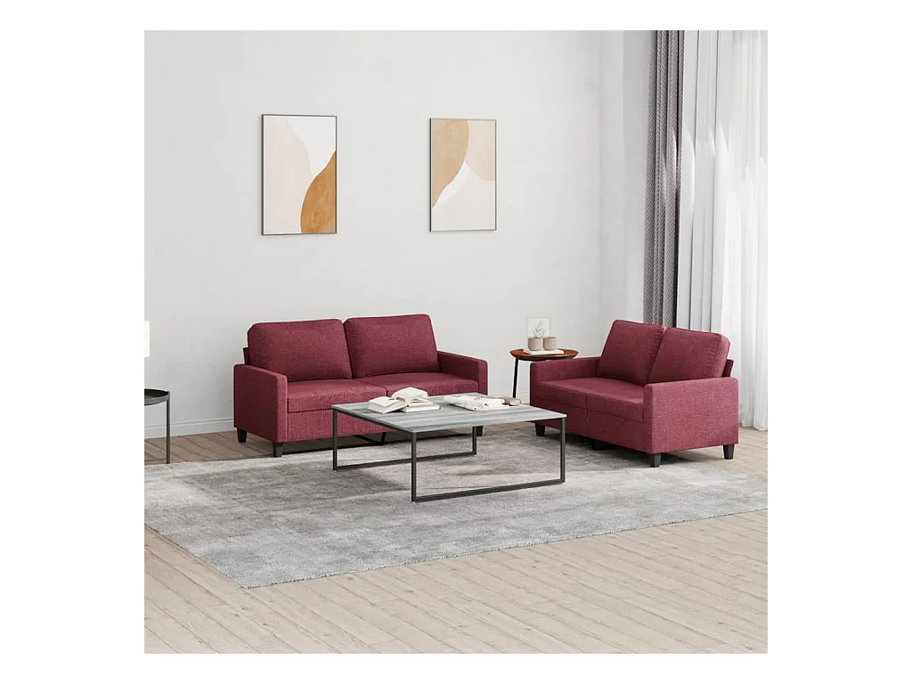 Ensemble de canapés 2 pcs avec coussins rouge bordeaux tissu