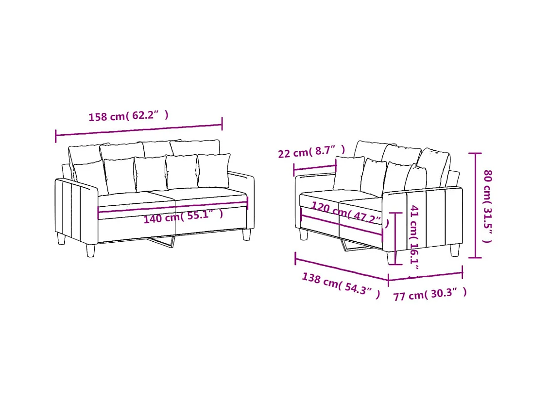 Ensemble de canapés 2 pièces avec coussins crème tissu