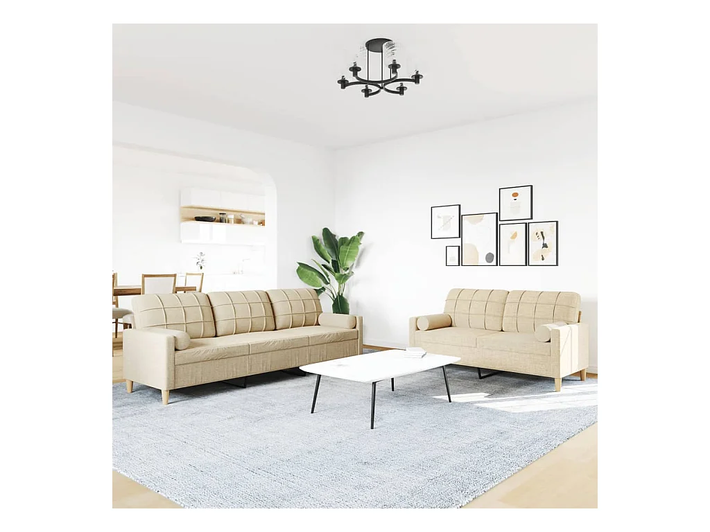 Ensemble de canapés 2 pièces avec coussins décoratifs crème tissu