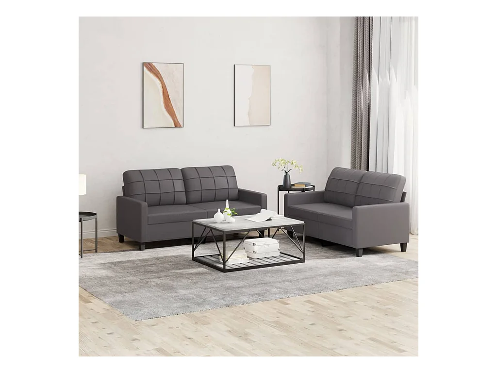 Ensemble de canapés 2 pièces avec coussins gris similicuir