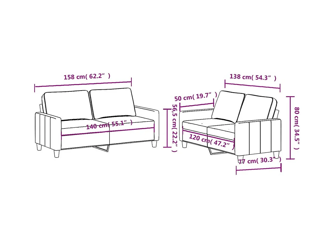 Ensemble de canapés 2 pièces avec coussins jaune clair tissu