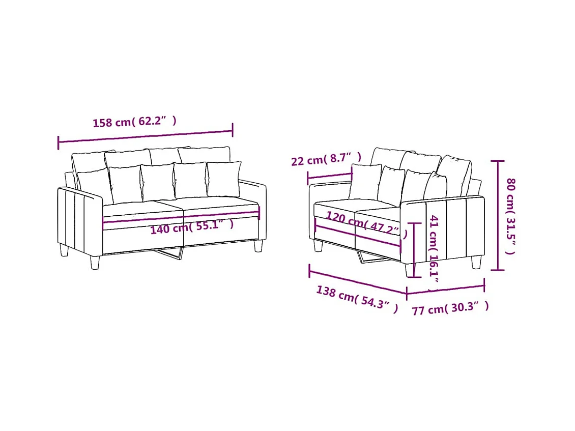 Ensemble de canapés 2 pièces avec coussins Marron Tissu