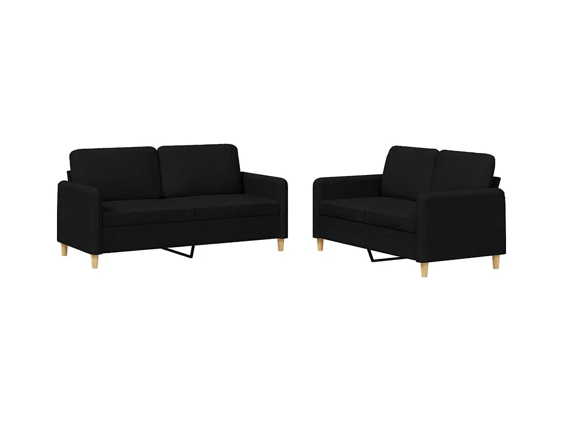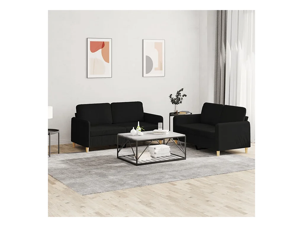 Ensemble de canapés 2 pièces avec coussins noir tissu